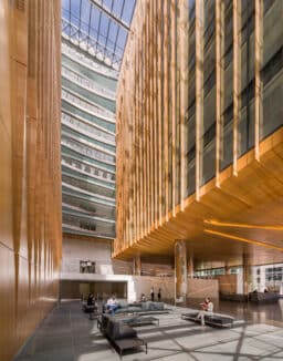 Alexander Court is a new trophy office development in the core of Washington, D.C.’s Central Business District. An unforgettable statement building, Alexander Court maximizes efficiency for tenants. Designed by the world-renowned firm of Pelli Clarke Pelli Architects, in collaboration with Fox Architects, the 800,000 square foot building complex offers frontage along four major thoroughfares. With over 1,000 linear feet of window line per floor, it is an ideal floor plate for today’s modern workplace.