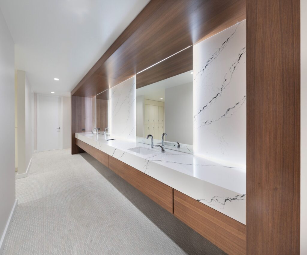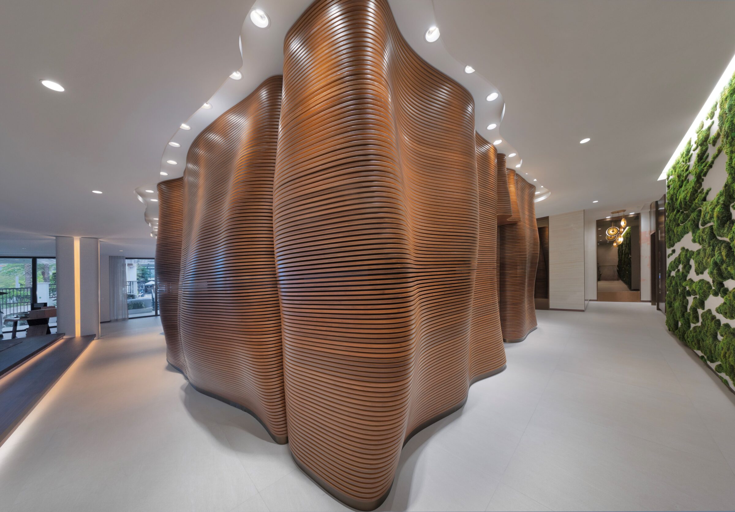 ISEC delivered the architectural woodwork for Alina Residences with exacting precision, bringing artistry and imagination into a luxury setting. Striking slatted wall features in the lobby showcase hundreds of individually installed custom blades, each perfectly aligned to achieve flawless geometry. The result is a warm, sculptural centerpiece that commands attention while elevating the architectural experience.