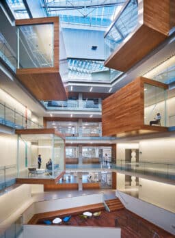 This 270,000-square-foot, state-of-the-art headquarters and research complex fosters the collaboration and cross-disciplinary interactions fuel the biotechnology sector.