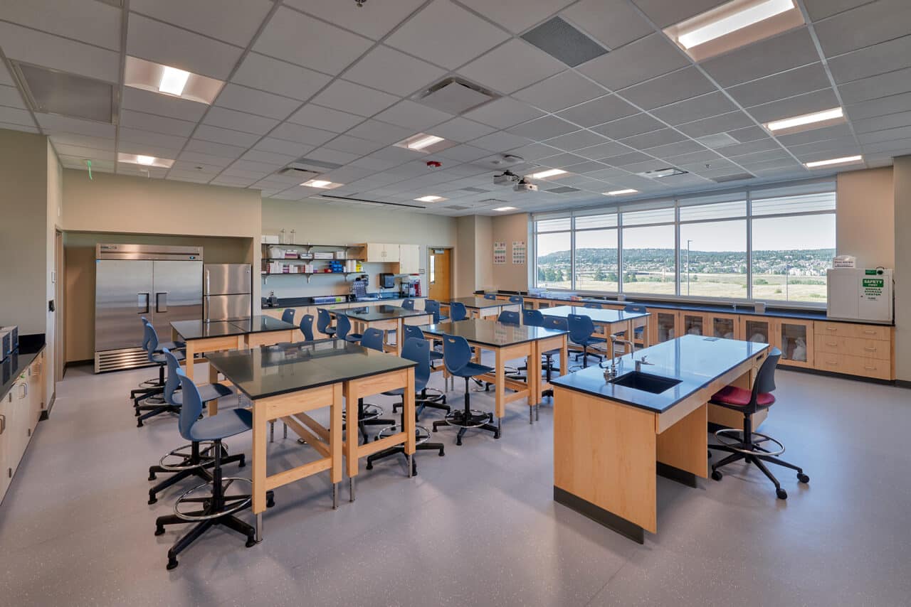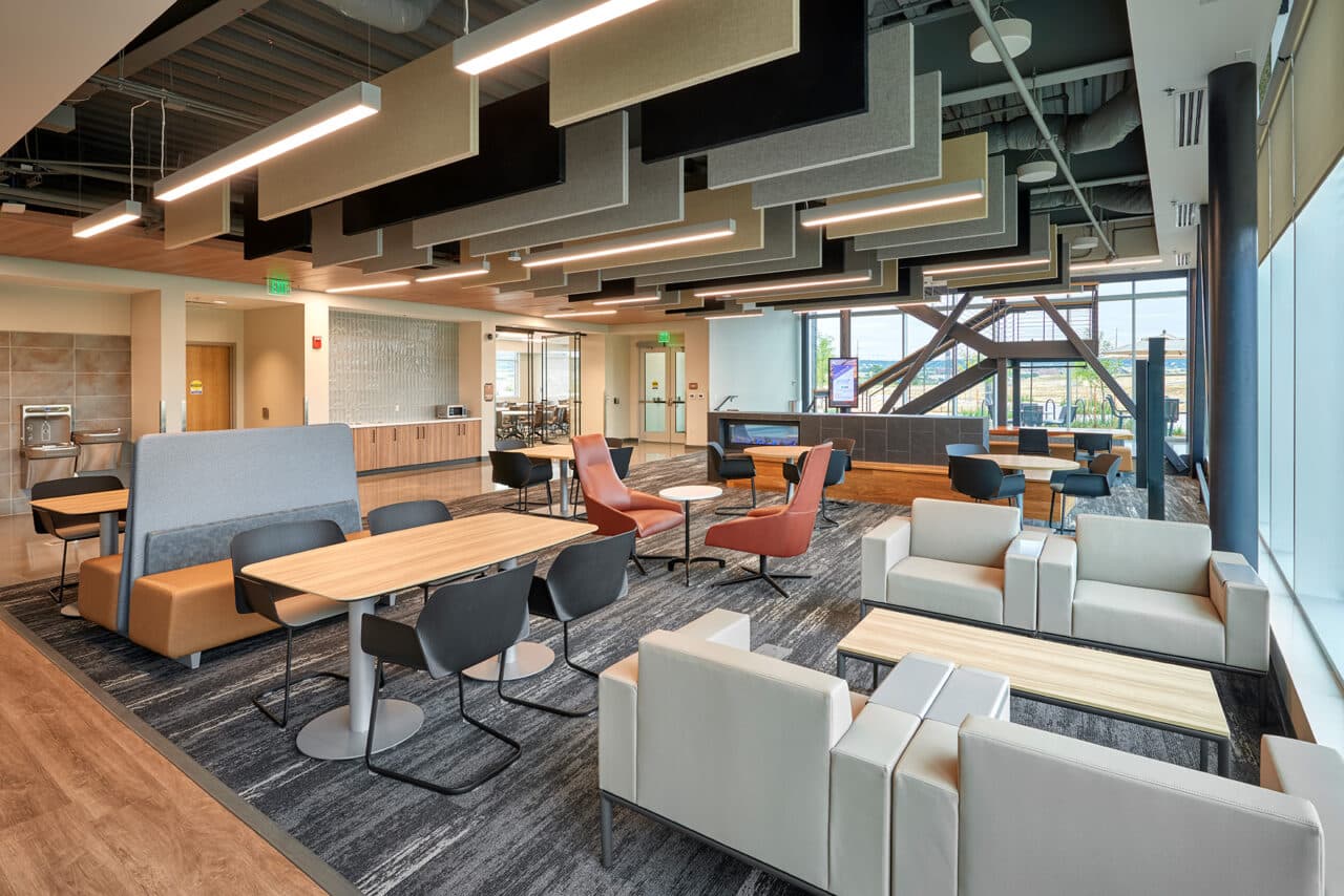 The Arapahoe Community College, Sturm Collaboration Campus, located between Castle Rock Adventist Hospital and Castle Rock Middle School, opened in August of 2019. This innovative campus is a joint venture between ACC, the town of Castle Rock, the Castle Rock Economic Development Council, CSU, and the Douglas County School District. This building project completed phase 1 in a 2-phase project across 14 acres of land, totaling over $40M. ISEC provided and installed all architectural woodwork on the project, including plastic laminate casework, quartz waterfall tops, wood lockers, wood laboratory casework, and laboratory equipment.