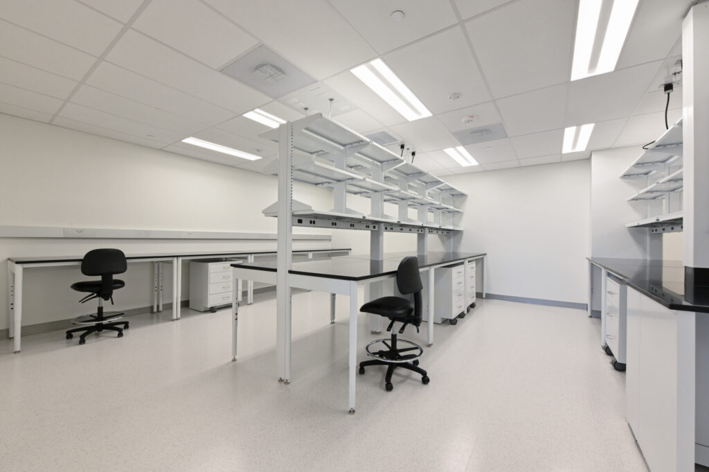 ISEC furnished and installed all of the laboratory casework including stainless steel tables, fume hoods, and custom workstations equipped with epoxy work surfaces and the gas/electrical fixtures needed to serve the equipment of the Arcellx research scientists.