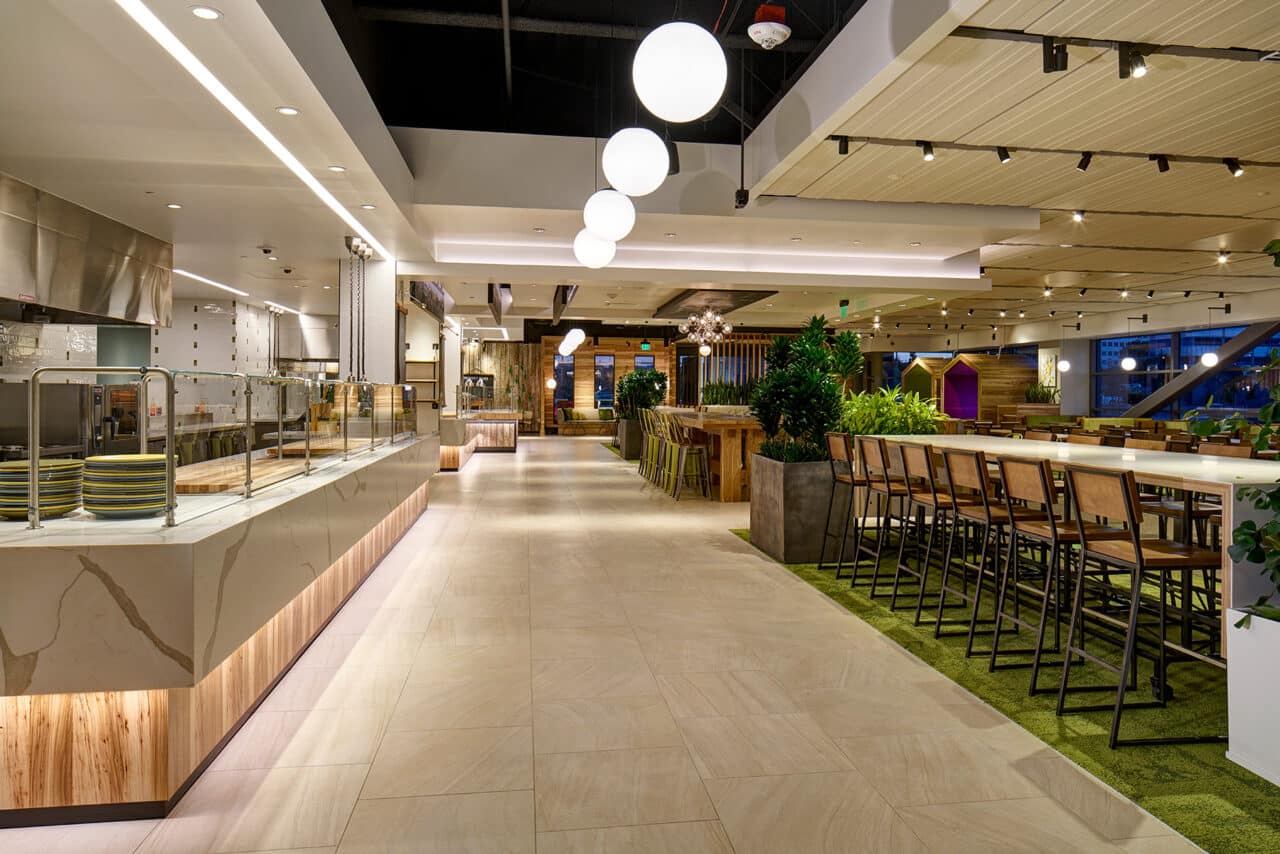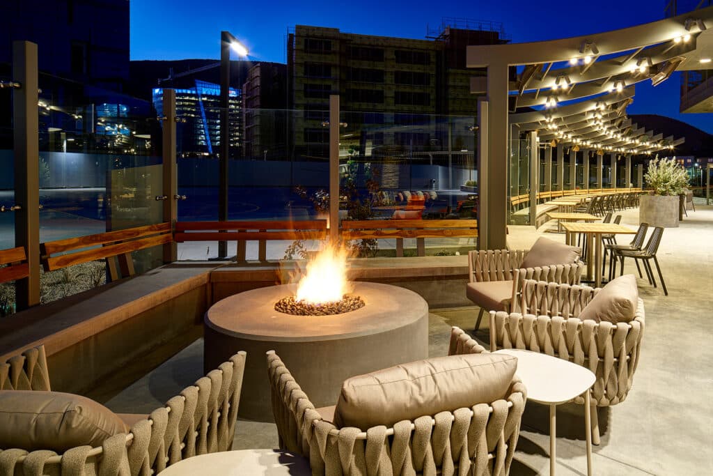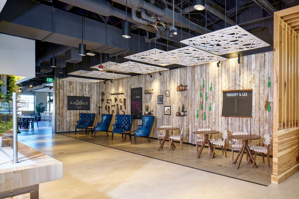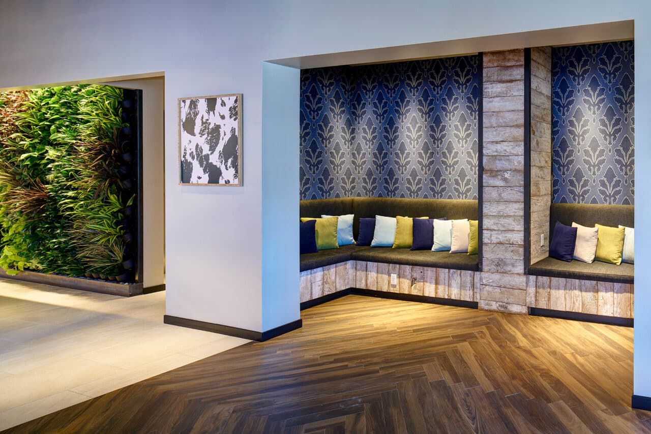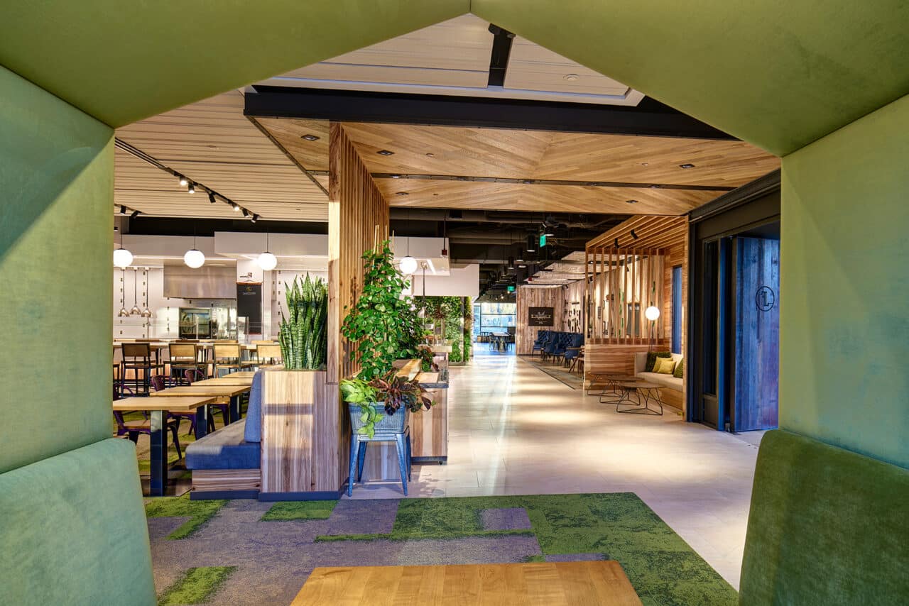 The Cove is designed to be the epicenter of life science and technology, sitting on a 20-acre campus. This amenity space provides a respite for office workers to relax and unwind.