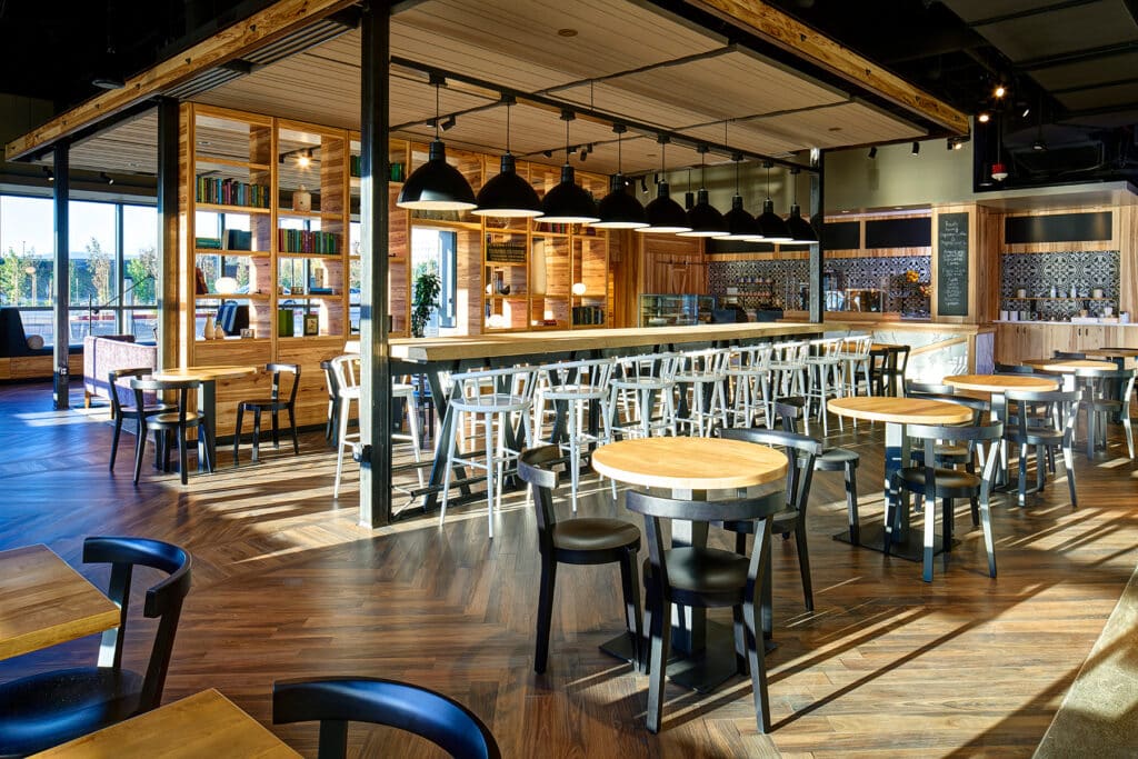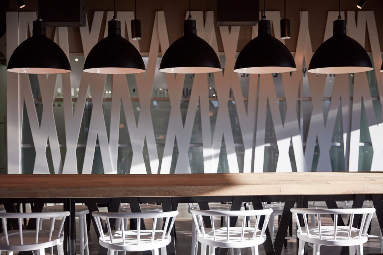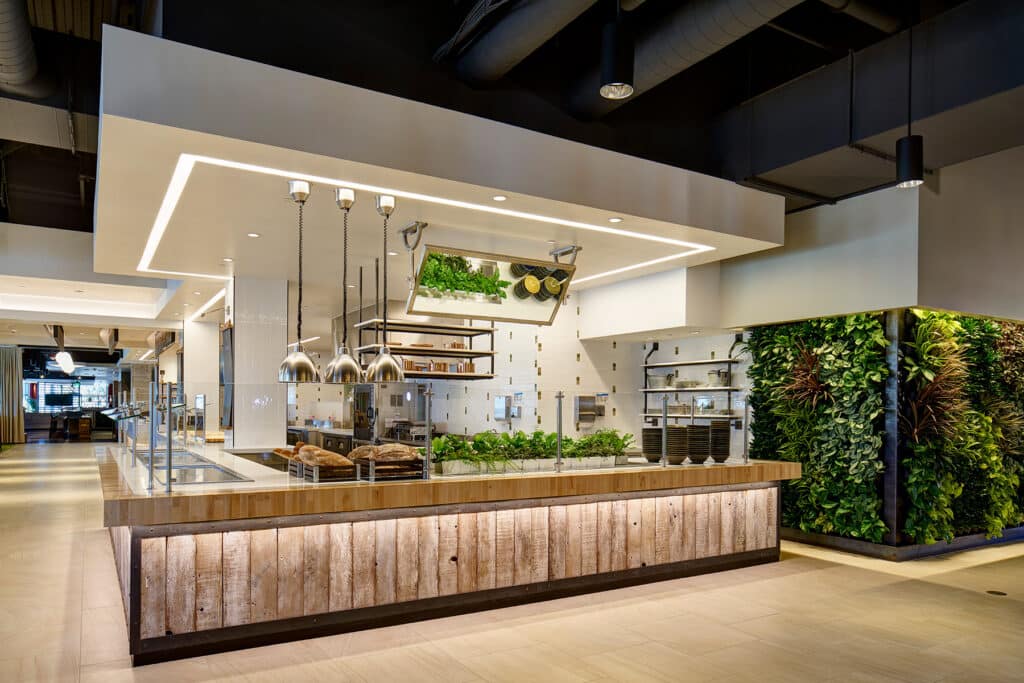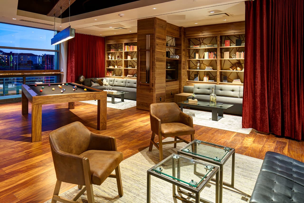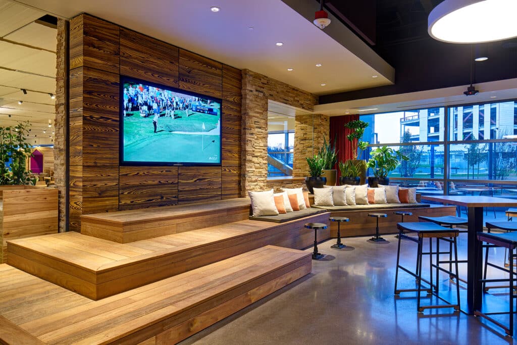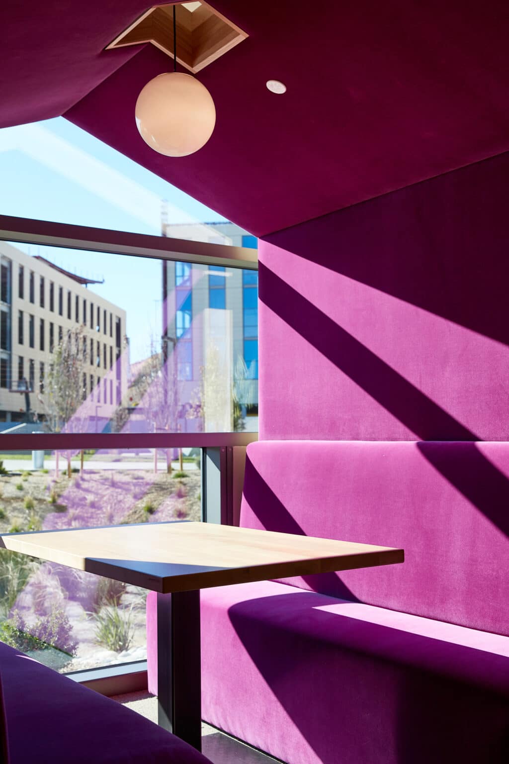 The Cove is designed to be the epicenter of life science and technology, sitting on a 20-acre campus. This amenity space provides a respite for office workers to relax and unwind.