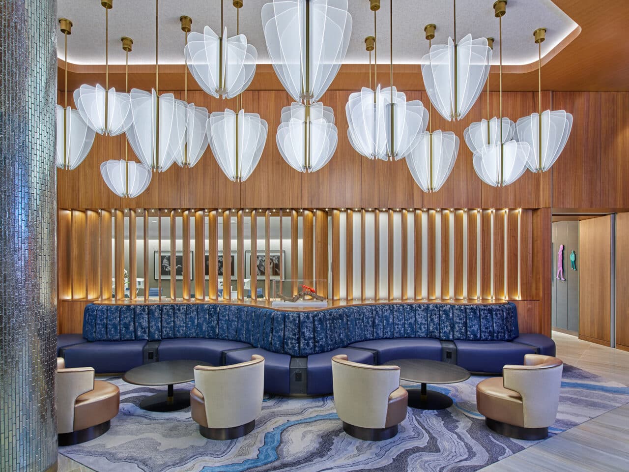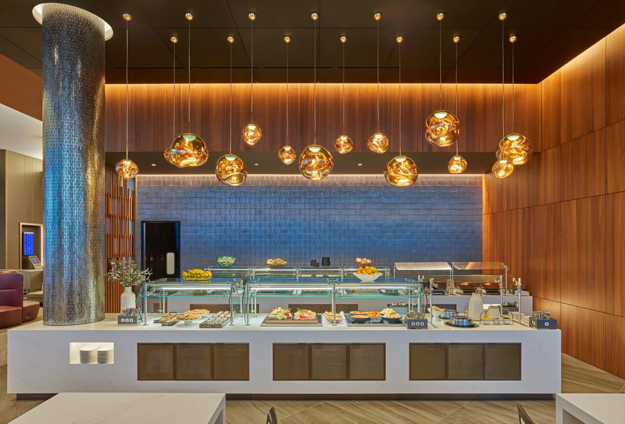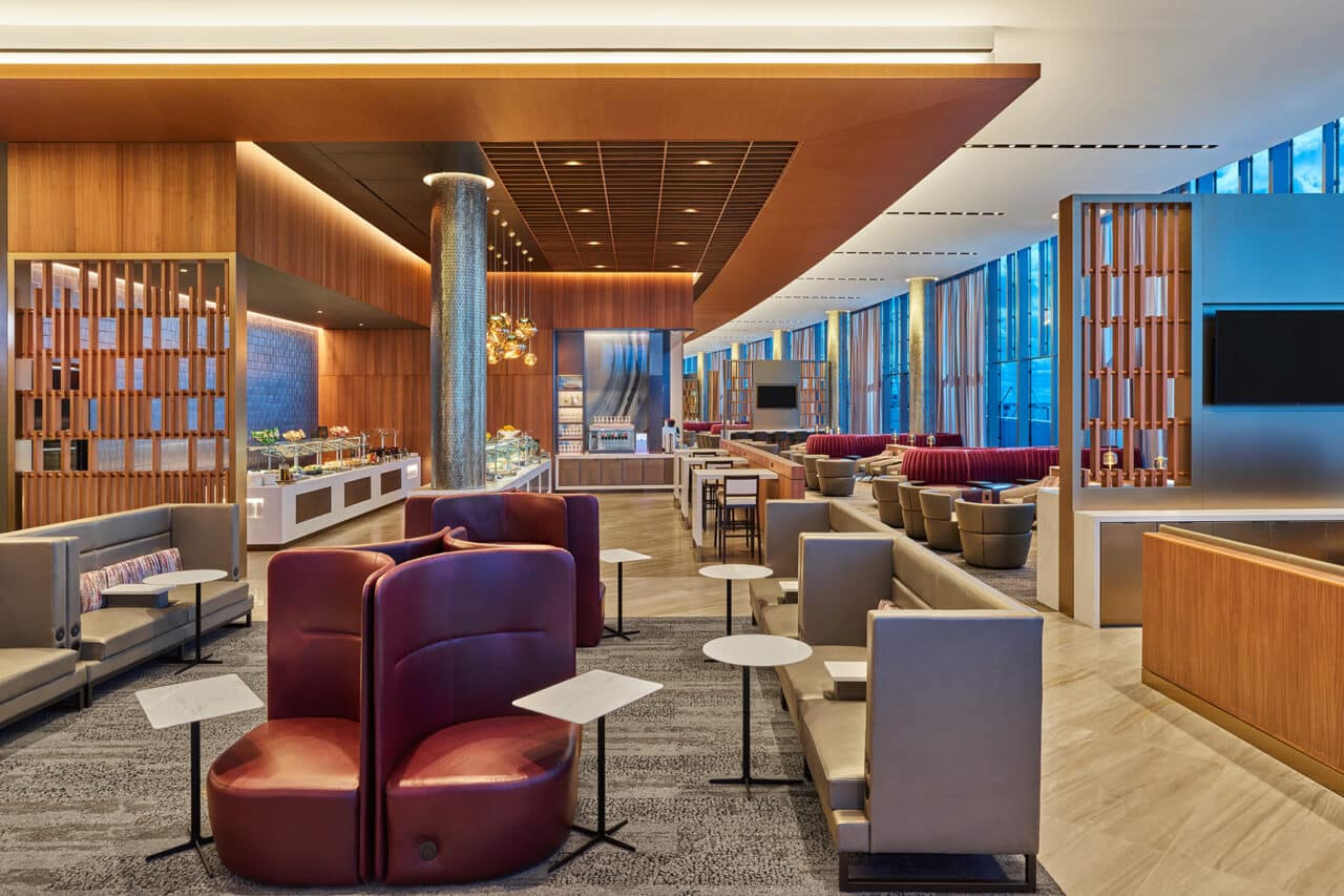 Culture and luxury meet at one of the largest Delta Sky Clubs in the world. This space offers a serene escape to each member when traveling. Members can enjoy a complimentary fully stocked bar, snacks, work stations, phones, WiFi, showers and meeting services.