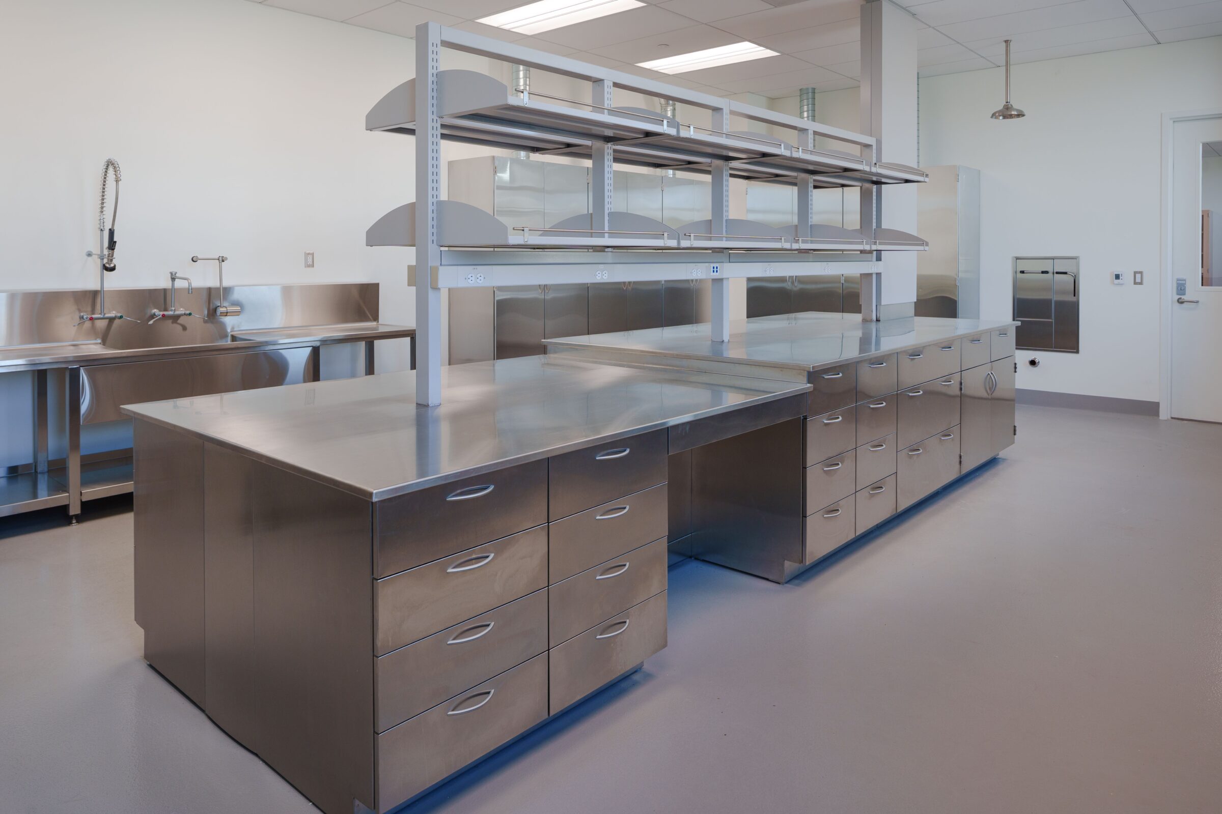 The project presented unique challenges, from meeting rigorous seismic safety requirements to ensuring compliance with NAAWS premium-grade standards while integrating Kewaunee’s catalog wood casework. With diverse disciplines under one roof—spanning microbiology, ceramics, chemistry, and even jewelry-making, the team tailored solutions for each space, from kilns to custom casework for embalming tables.