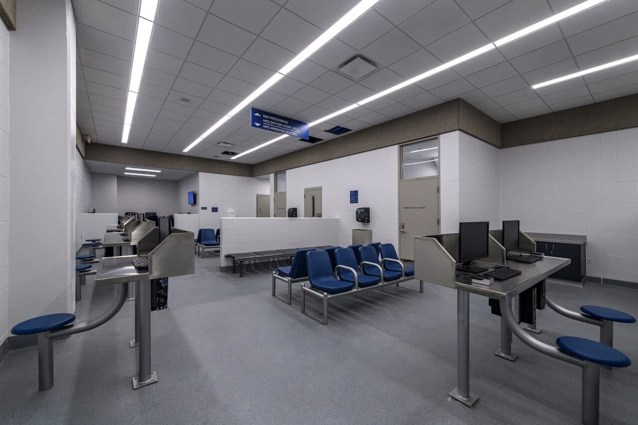 Harris County Joint County City Processing Center is a 246,000-square-foot facility with a basement, three floors, and a secure tunnel connection to other county facilities. ISEC provided a comprehensive general trades package, including door frames & hardware, seating, specialties, and equipment for this project.