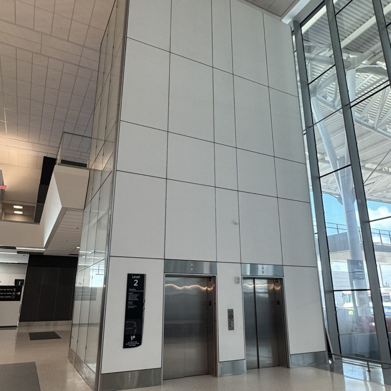 ISEC furnished and installed check-in counters, scales, metal and glass decorative systems, and non-progressive panel assemblies. In addition, ISEC fitted precision-installed stanchions with high-strength magnetic bases and closely collaborated with the general contractor on the elevator front glass wall tie-ins.