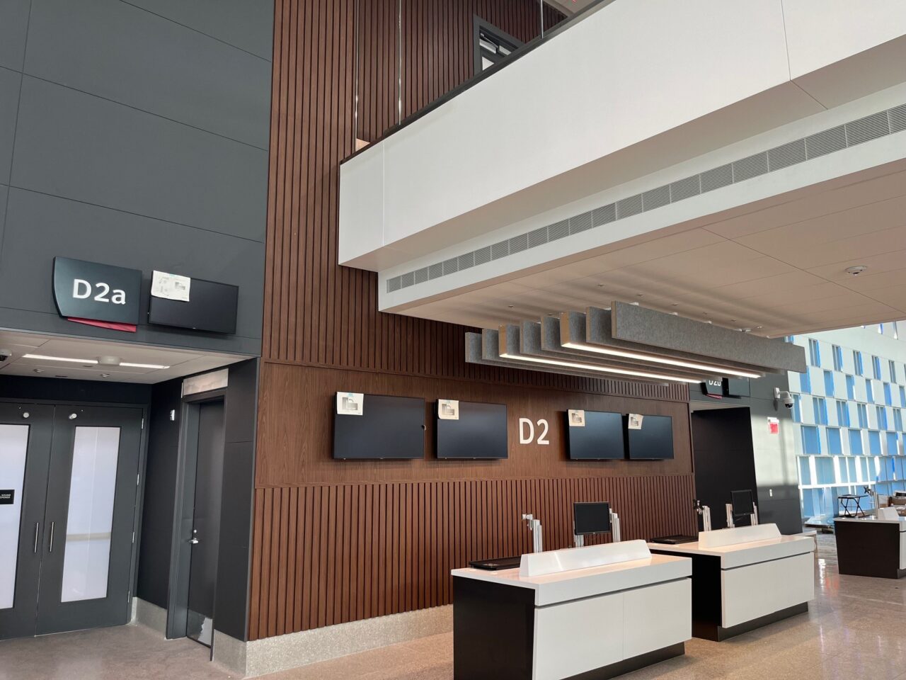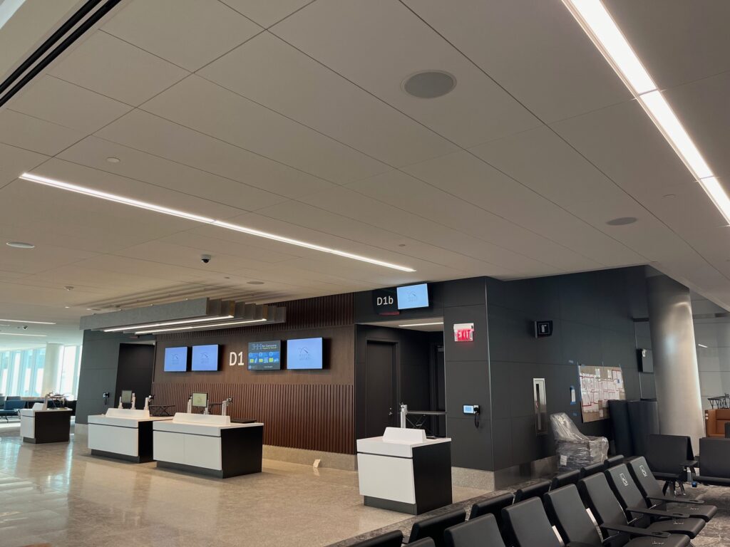 ISEC delivered high-end architectural finishes for the Mickey Leland International Terminal D West Pier, C-D Sterile Corridor & C Knuckle renovations at Houston’s George Bush Intercontinental Airport (IAH), completing phased installations within a fully operational, security-sensitive environment. ISEC’s scope included architectural metals, crash rails, non-progressive wall panel systems, and gate counter backwalls, executed with precision across highly visible passenger areas while maintaining uninterrupted airport operations.