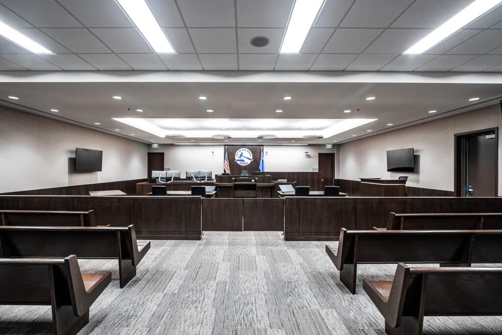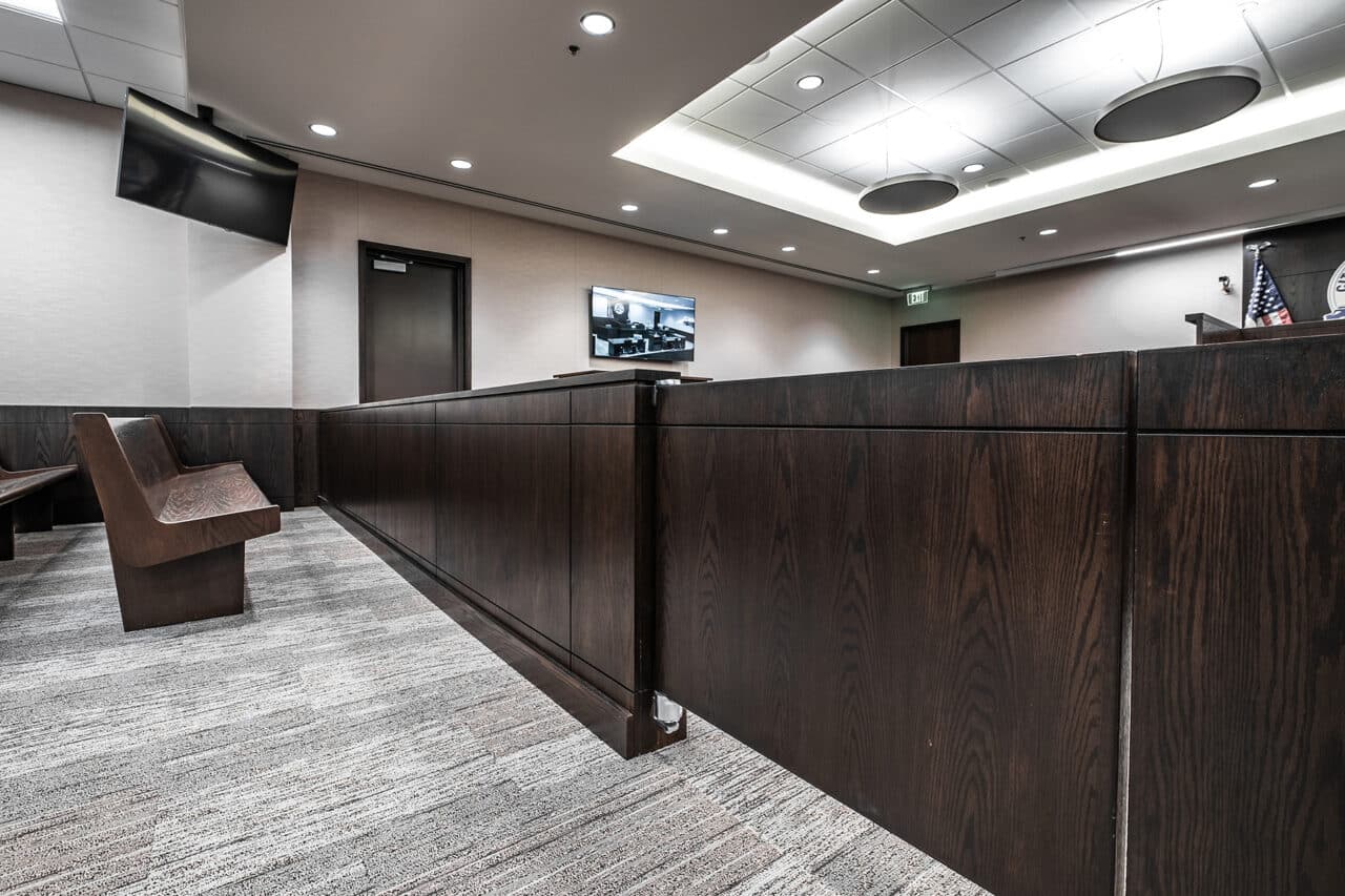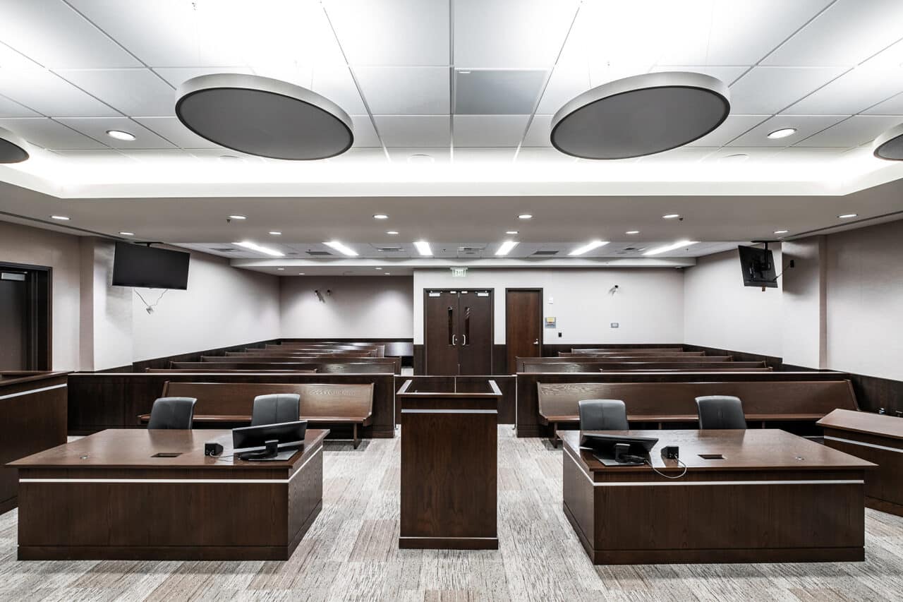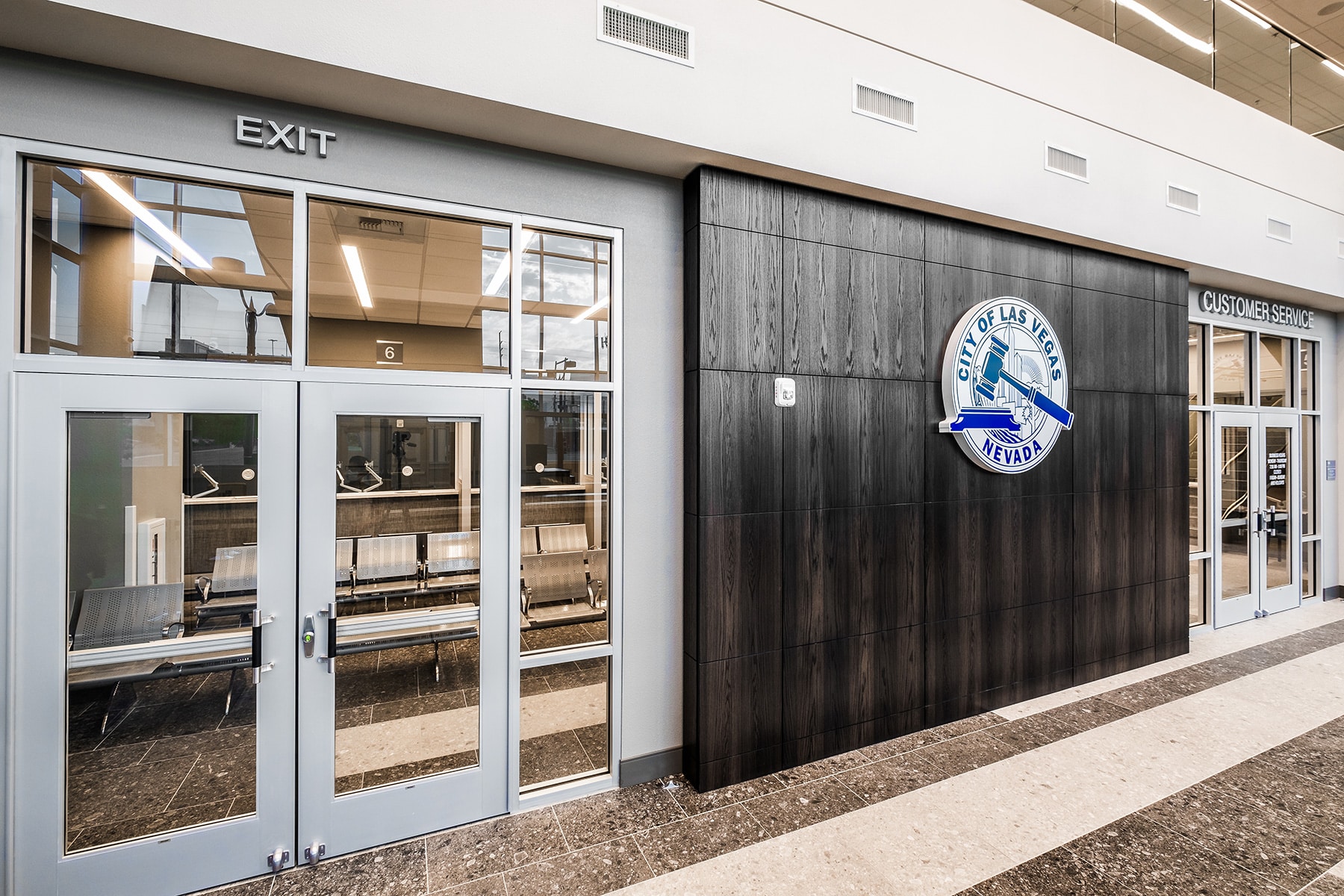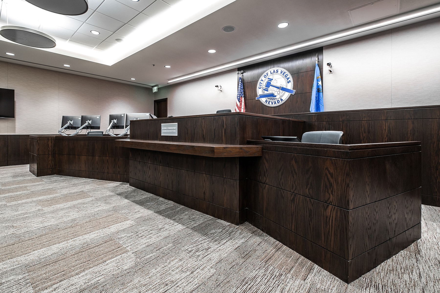 The Las Vegas Municipal Courthouse is a 5-story courthouse building, with a 1-level concrete subterranean garage, and 4 levels of steel framed floors. It includes 7 courtrooms.