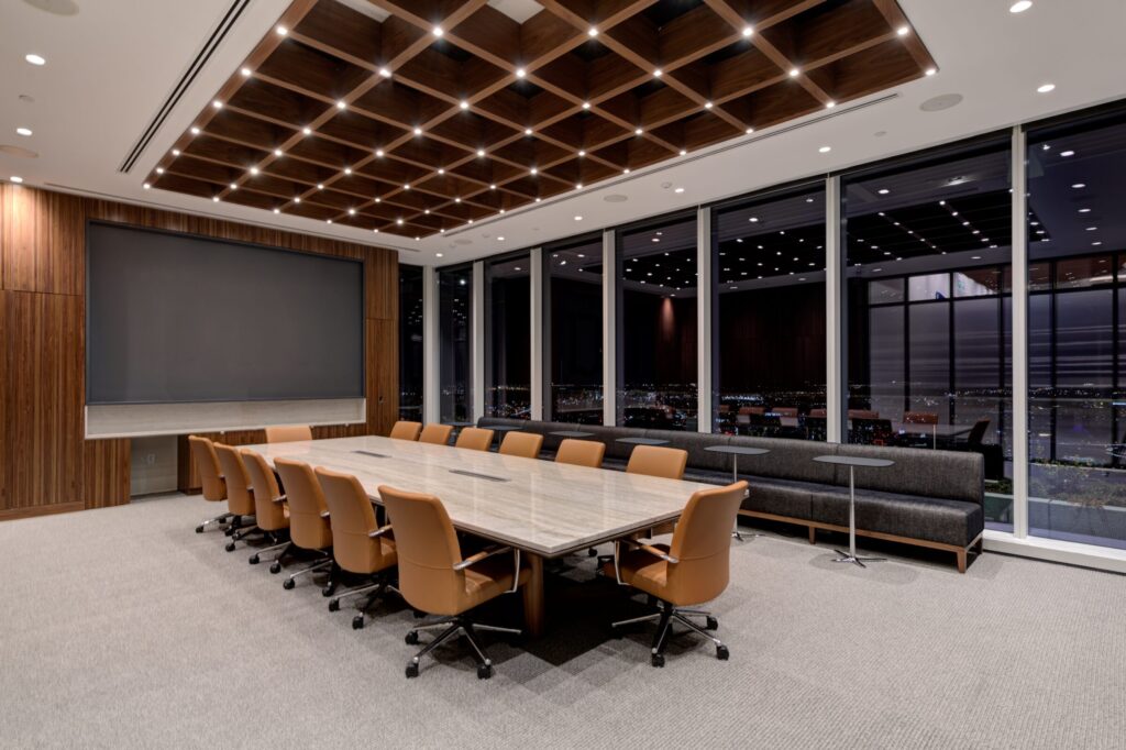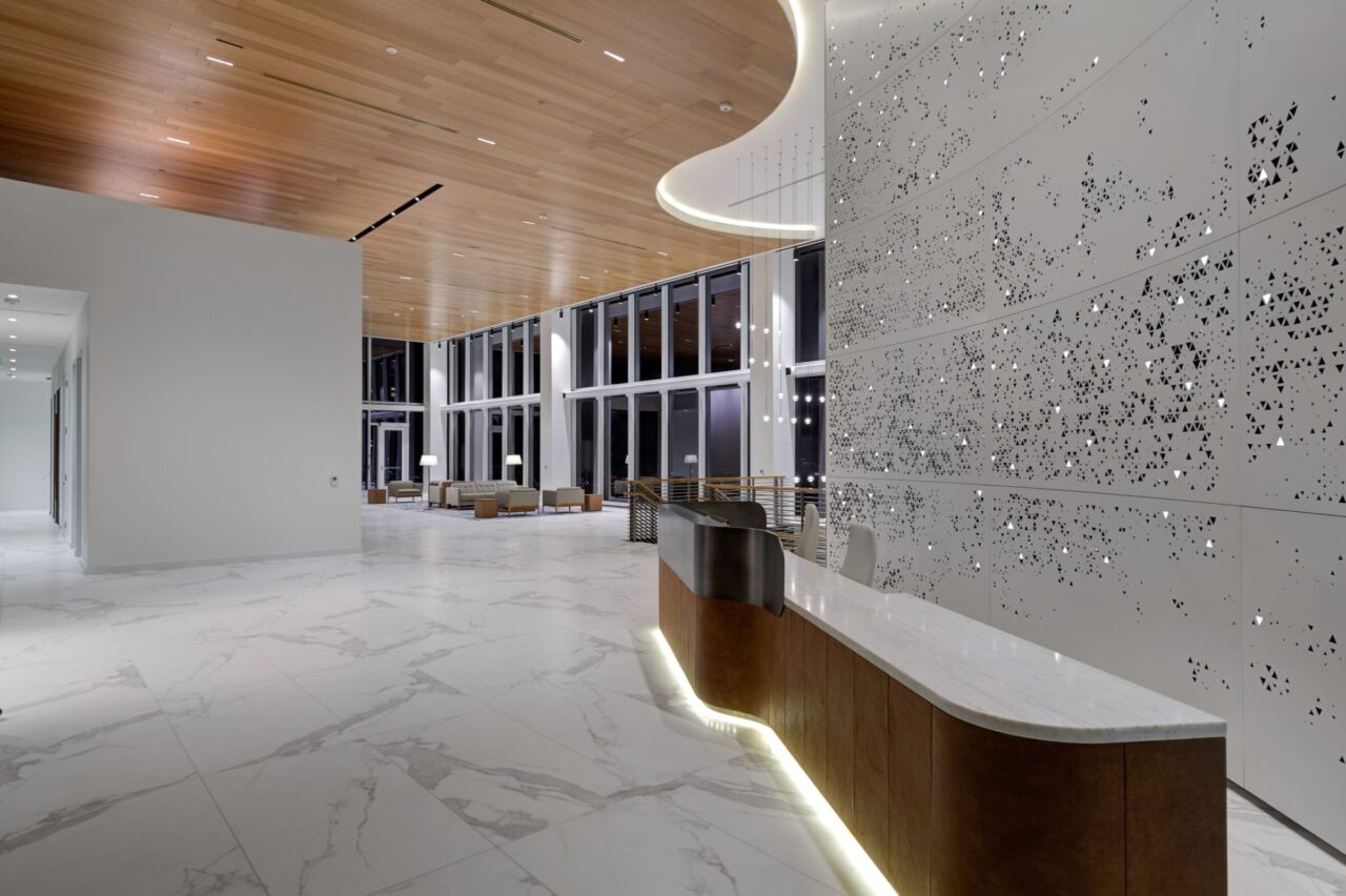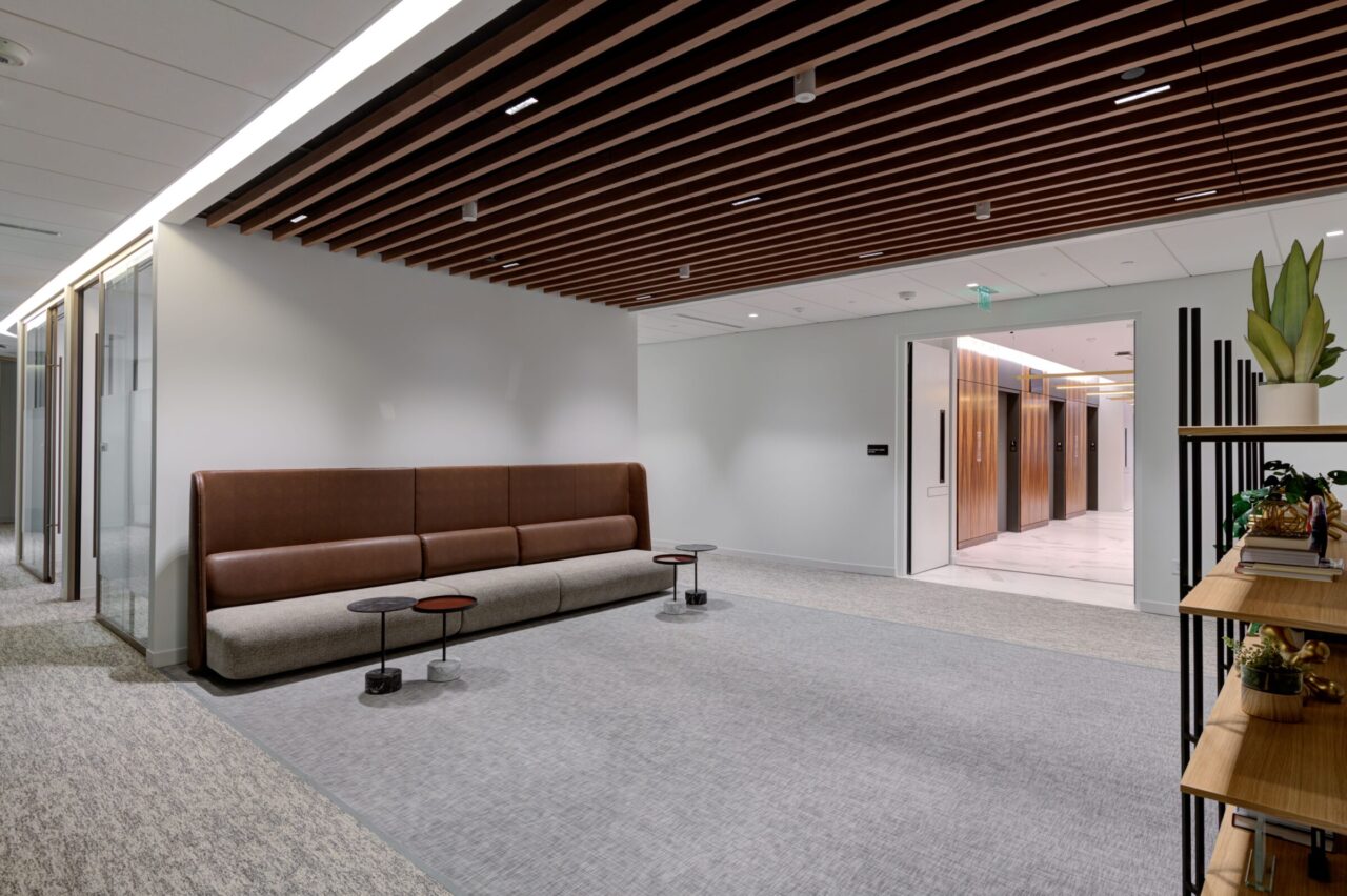 This project showcases ISEC’s expertise in high-end millwork and architectural finishes, blending craftsmanship with modern workplace design.