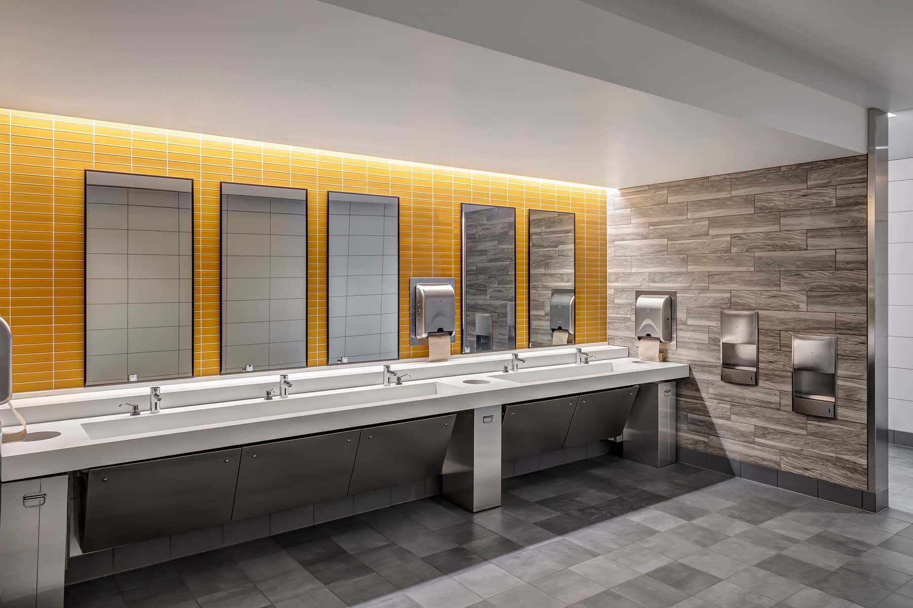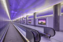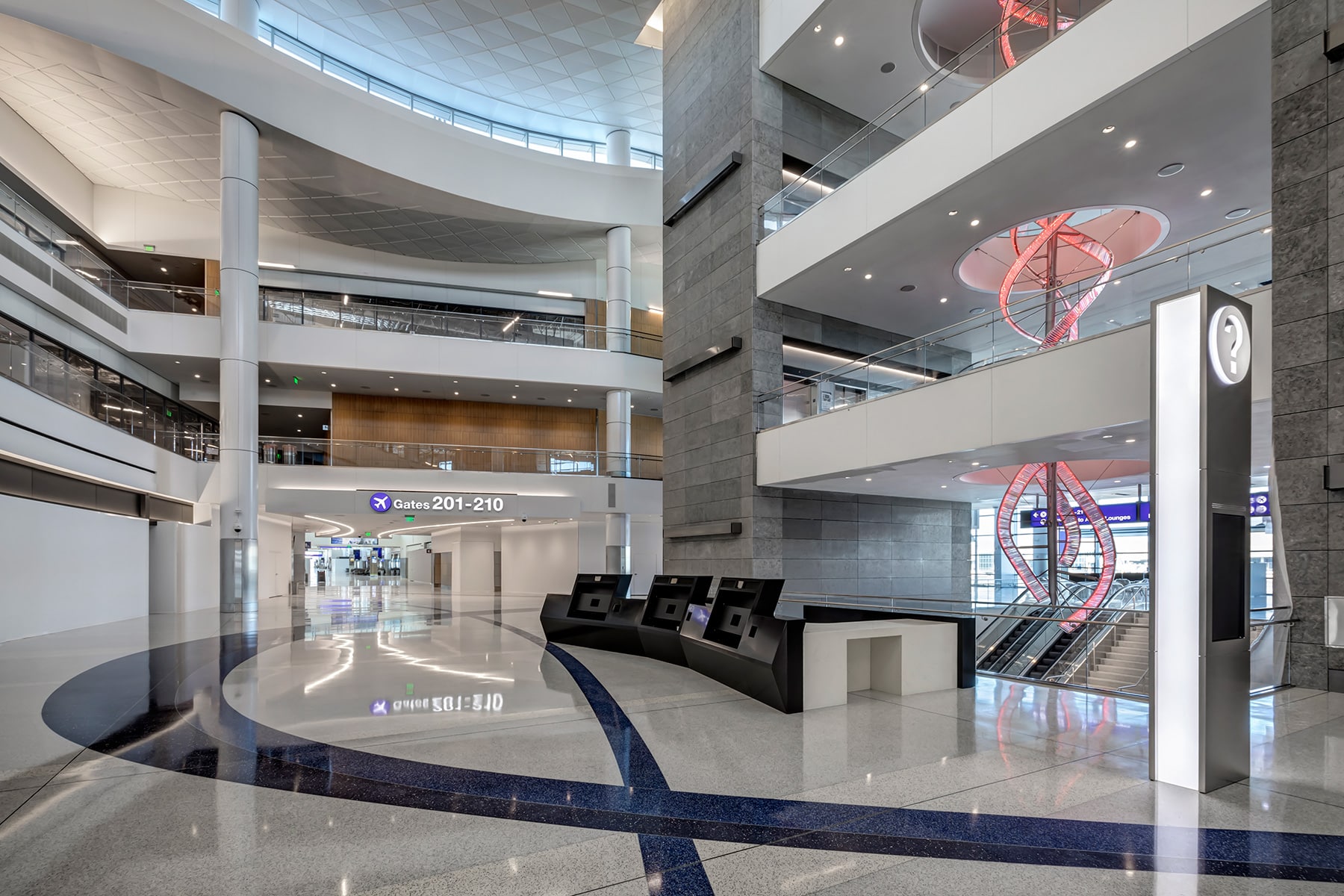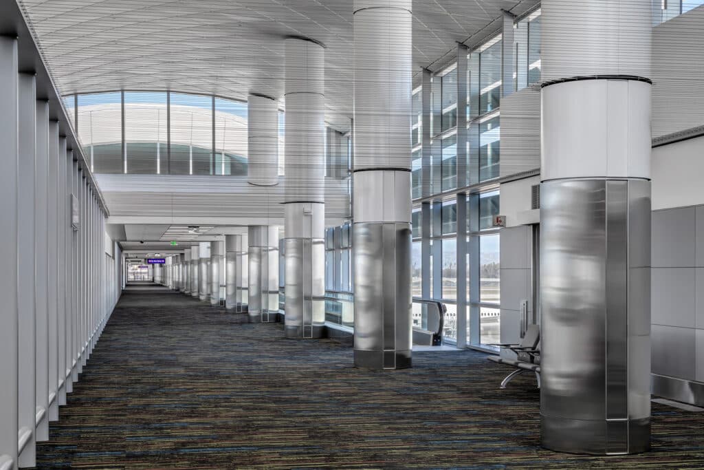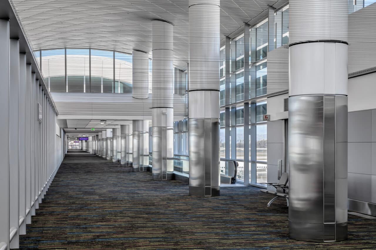 LAX Midfield Satellite Concourse (MSC North) is a $1.6B development. This project is a 5-level facility with 12 new gates, consists of 750,000 square feet, and features a connecting tunnel (TPAX) to Gateway/TBIT. ISEC exceeded customer expectations with interior finish solutions consisting of column/beam covers, metal wall protection, interior storefront glass and doors, interior glass | phenolic and porcelain panels.