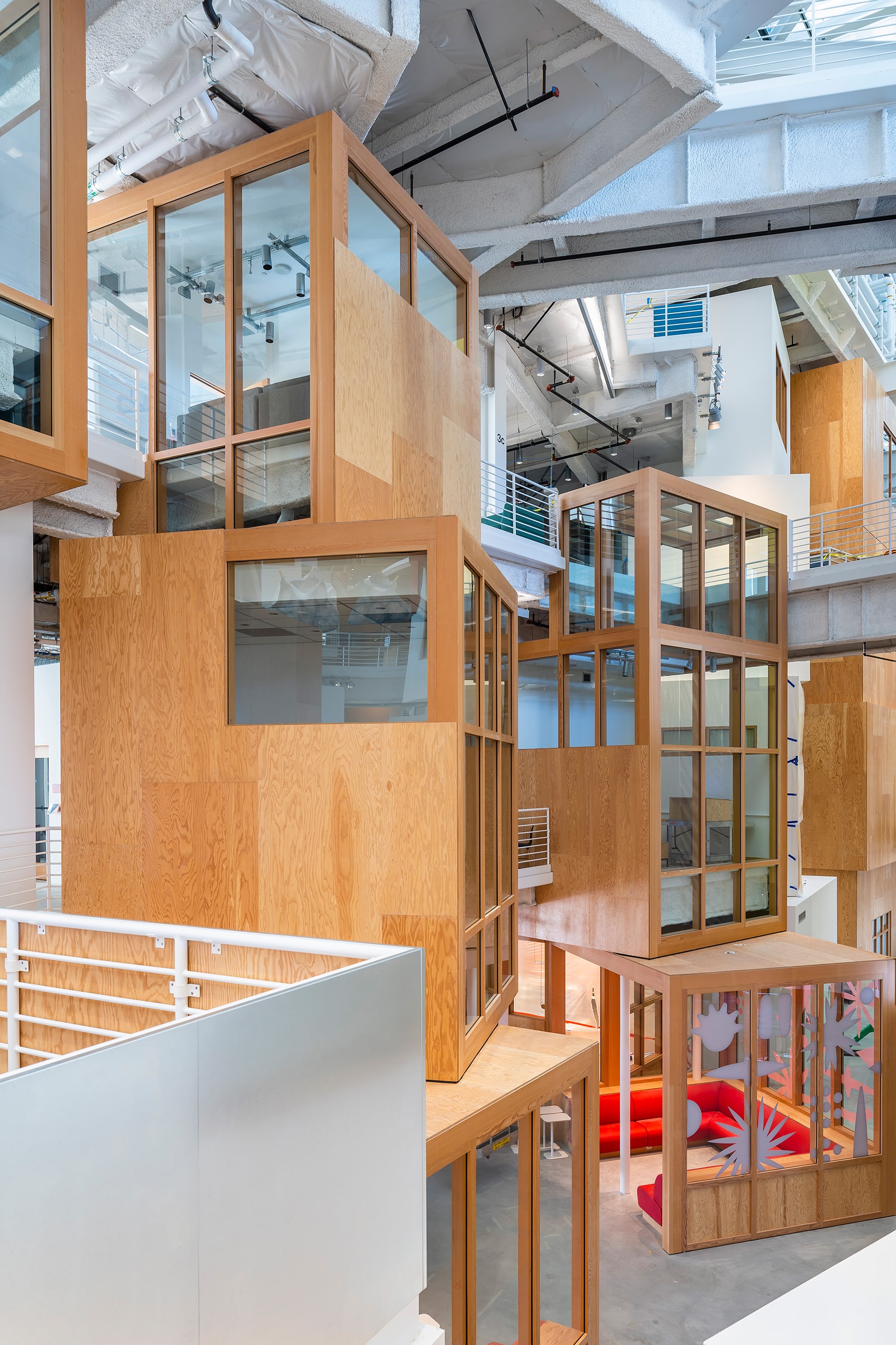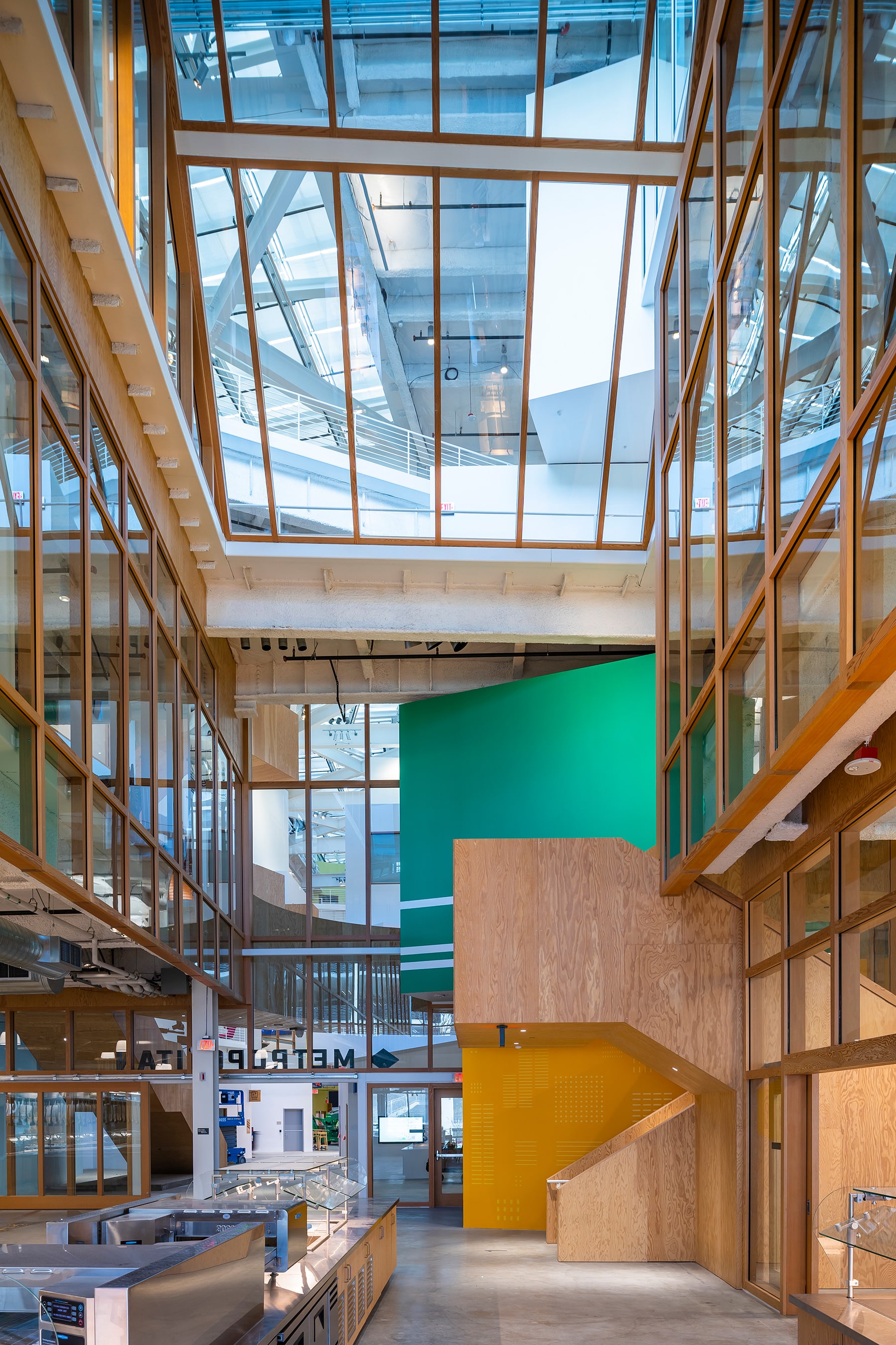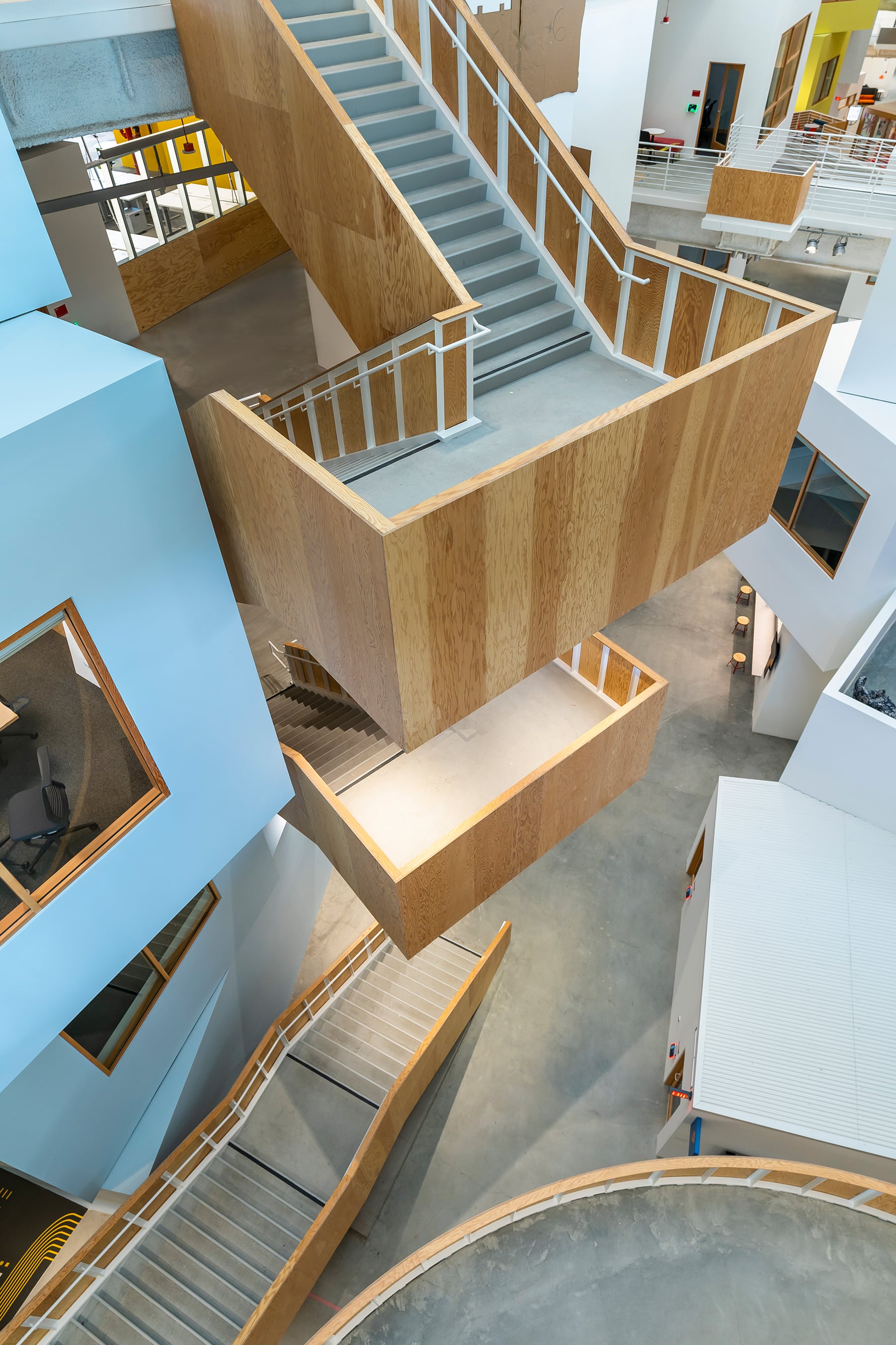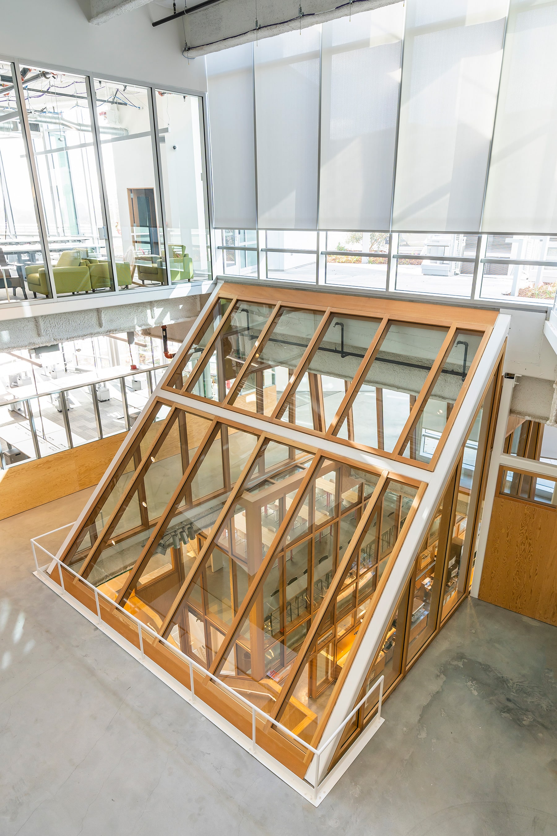 The second of three buildings designed by Gehry Partners, this building is a large-scale, single level of open office with a 2,000-seat event space below a massive green roof.
