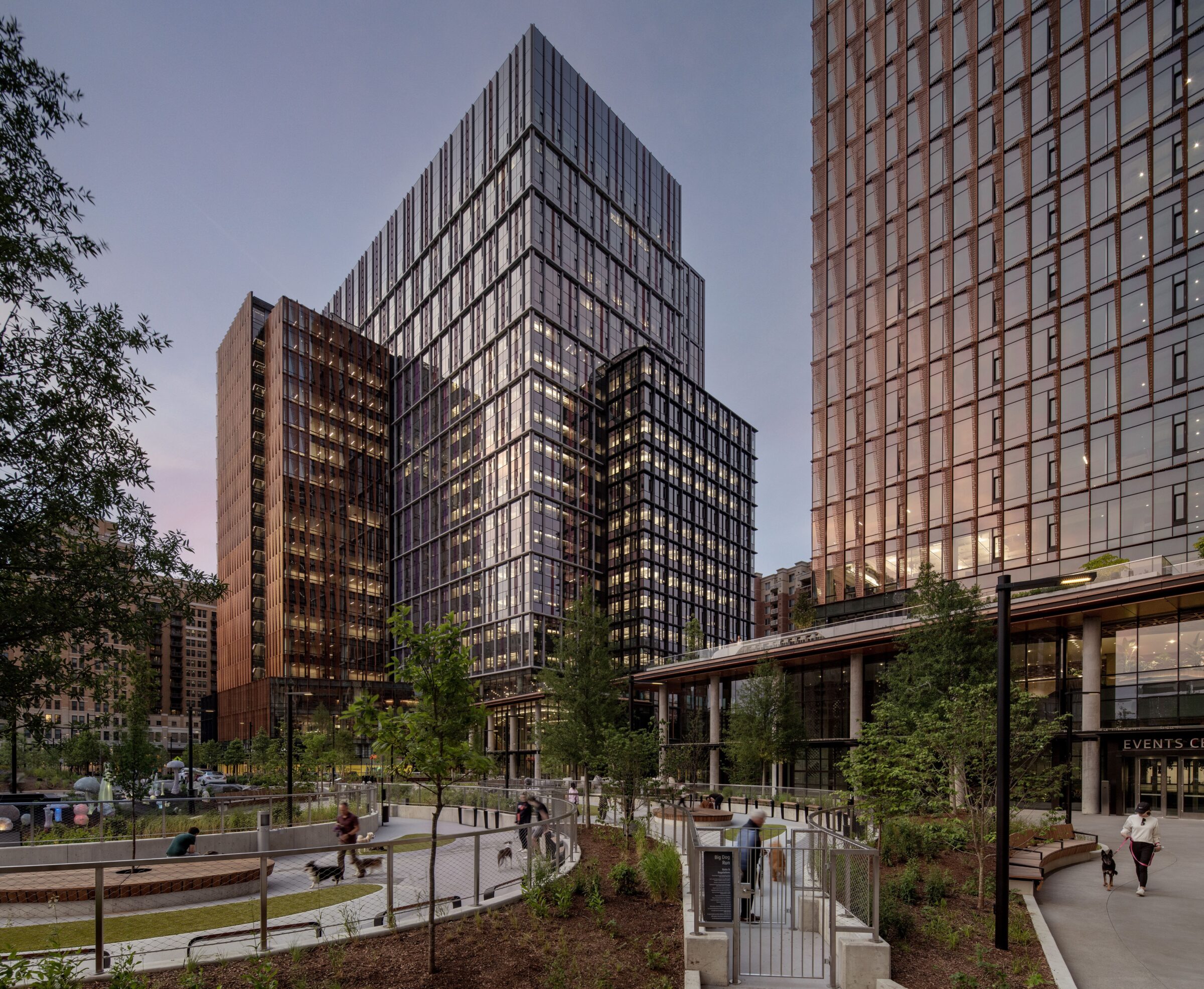 Other notable features of the Metropolitan Park project include the four monumental stairs, with panel cladding engineered and constructed with rare high-strength earth magnets in place of exposed fasteners, and the two art walls with over 10,000 components combined.