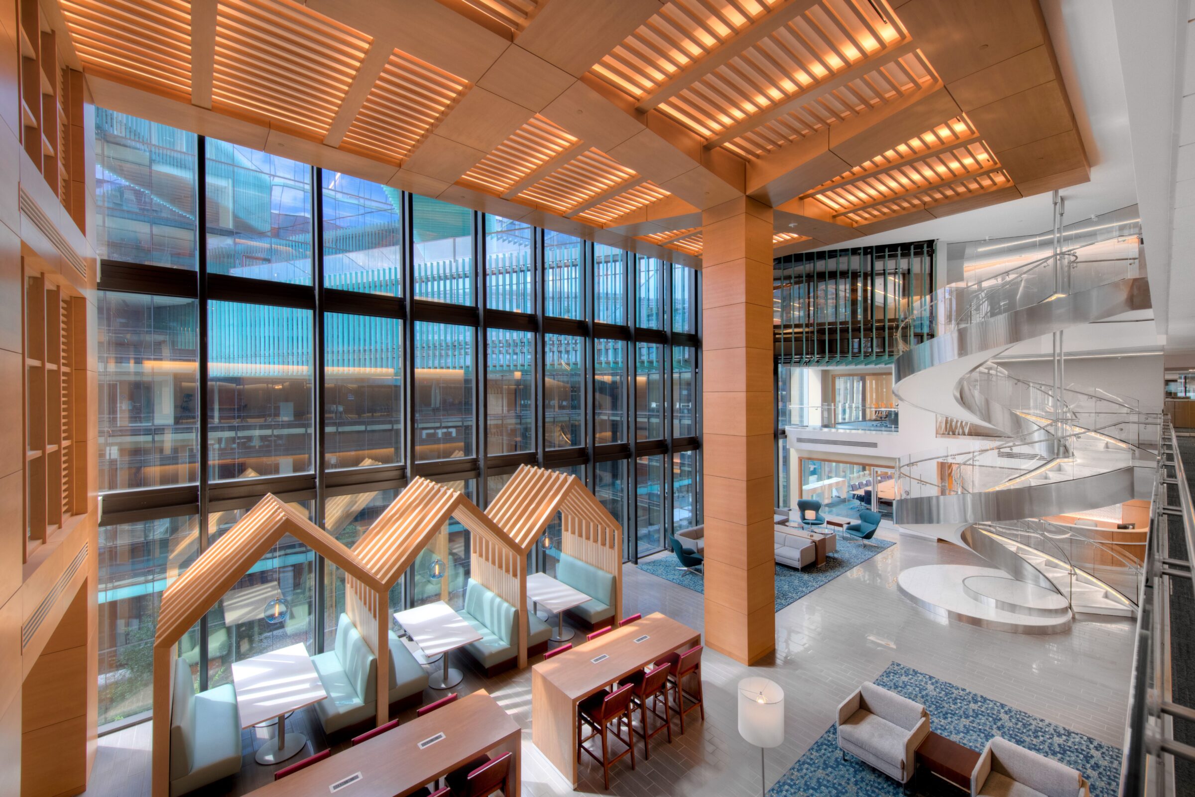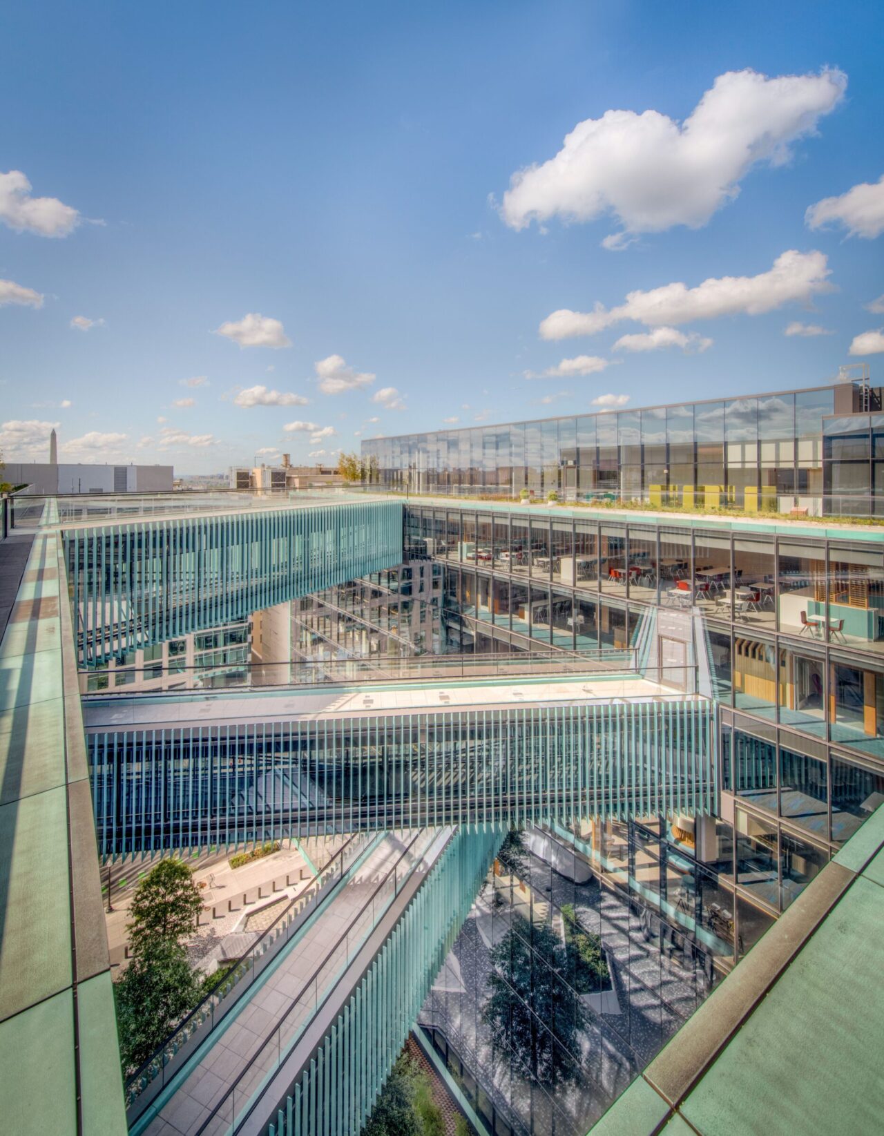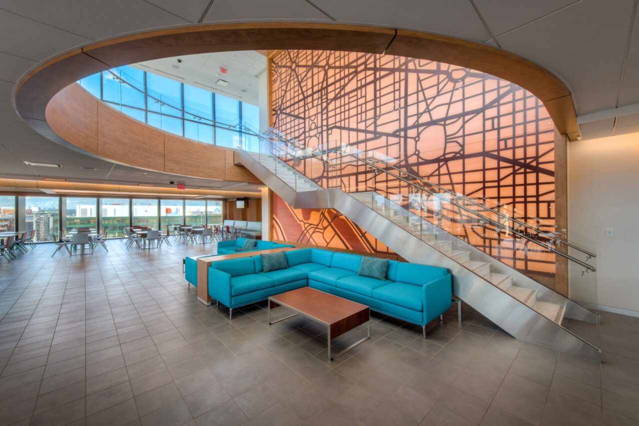 Midtown Center is a premier 14-floor trophy office building located in the heart of Washington, DC. The building features two towers connected by three pedestrian bridges, each extending 100 feet across the plaza below, creating a striking and modern design. ISEC provided key solutions throughout the project, delivering architectural woodwork, ceilings, doors, frames and hardware, and metals, all while navigating the complex scope and fast-paced construction schedule.