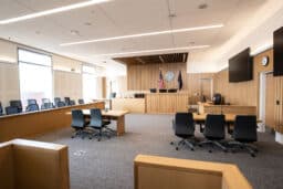 This new courthouse includes the Multnomah Circuit Court operations’ departments, judicial offices, and 44 courtrooms. The courthouse includes orientation and deliberation rooms for jurors and grand jurors; Multnomah County Probation Intake offices; Sheriff offices for courthouse security; facilities for the transport of in-custody defendants; and the Multnomah County District Attorney’s Office.