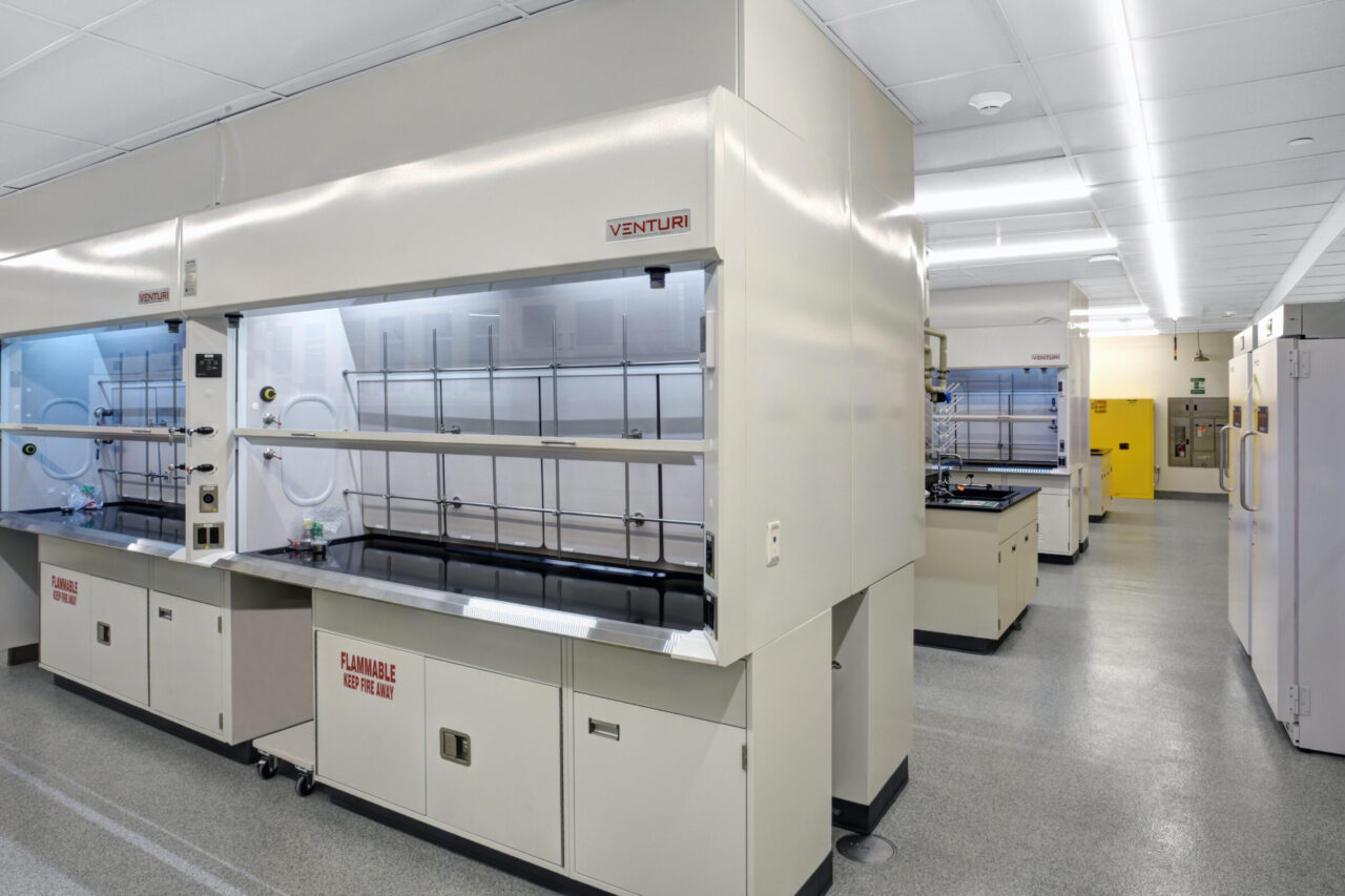 ISEC partnered closely with the project team throughout the design and construction process to transform an existing office space into Novo Nordisk’s state-of-the-art pharmaceutical manufacturing facility. A highlight of the project was the design and fabrication of custom 16-foot walk-in fume hoods, engineered for both safety and functionality. Additional scope included flexible lab benches, precisely installed snorkels, and other specialized lab components that showcase ISEC’s craftsmanship and attention to detail.
