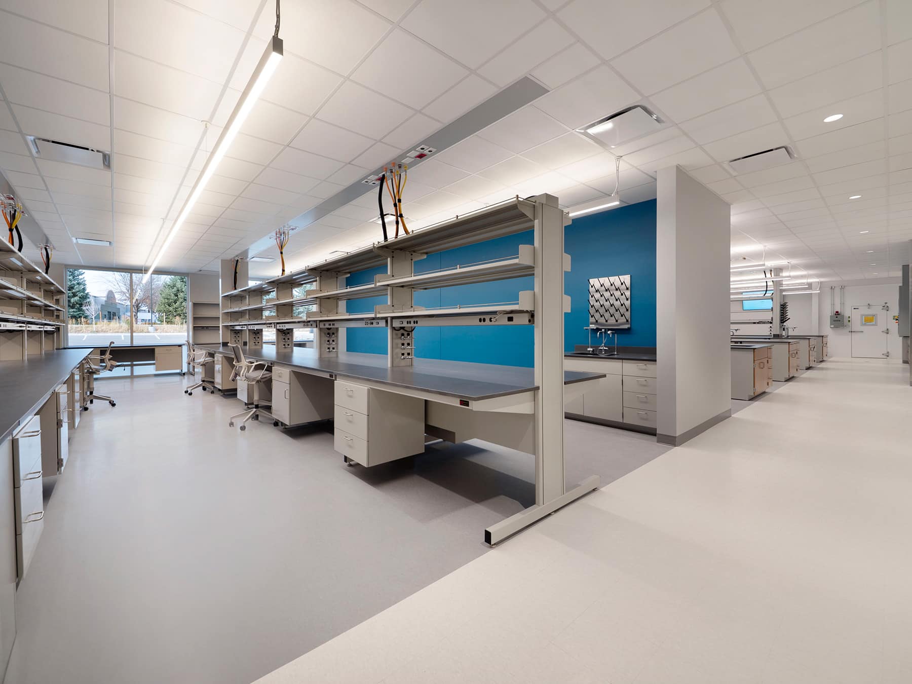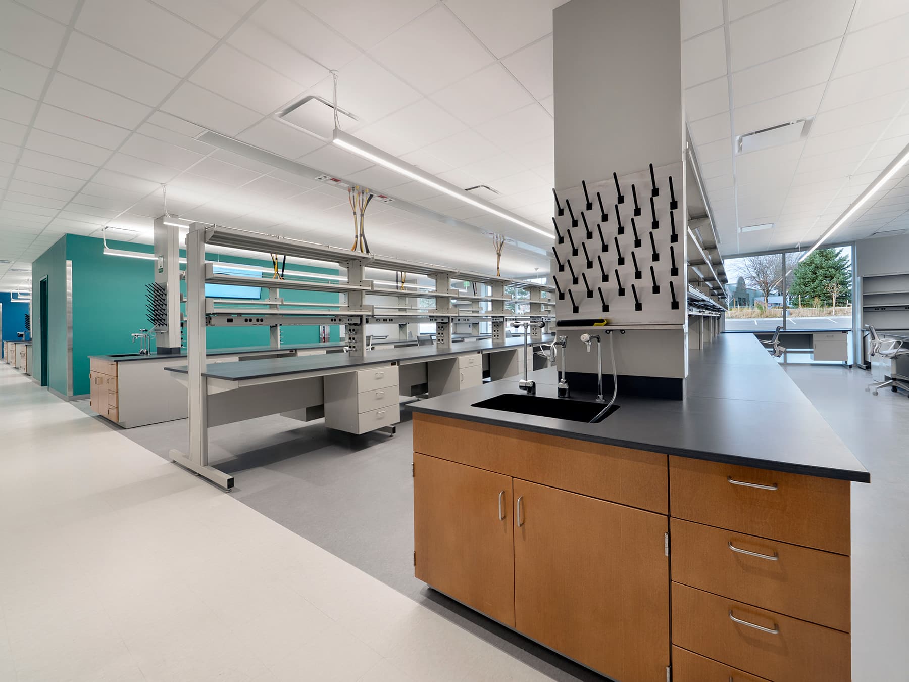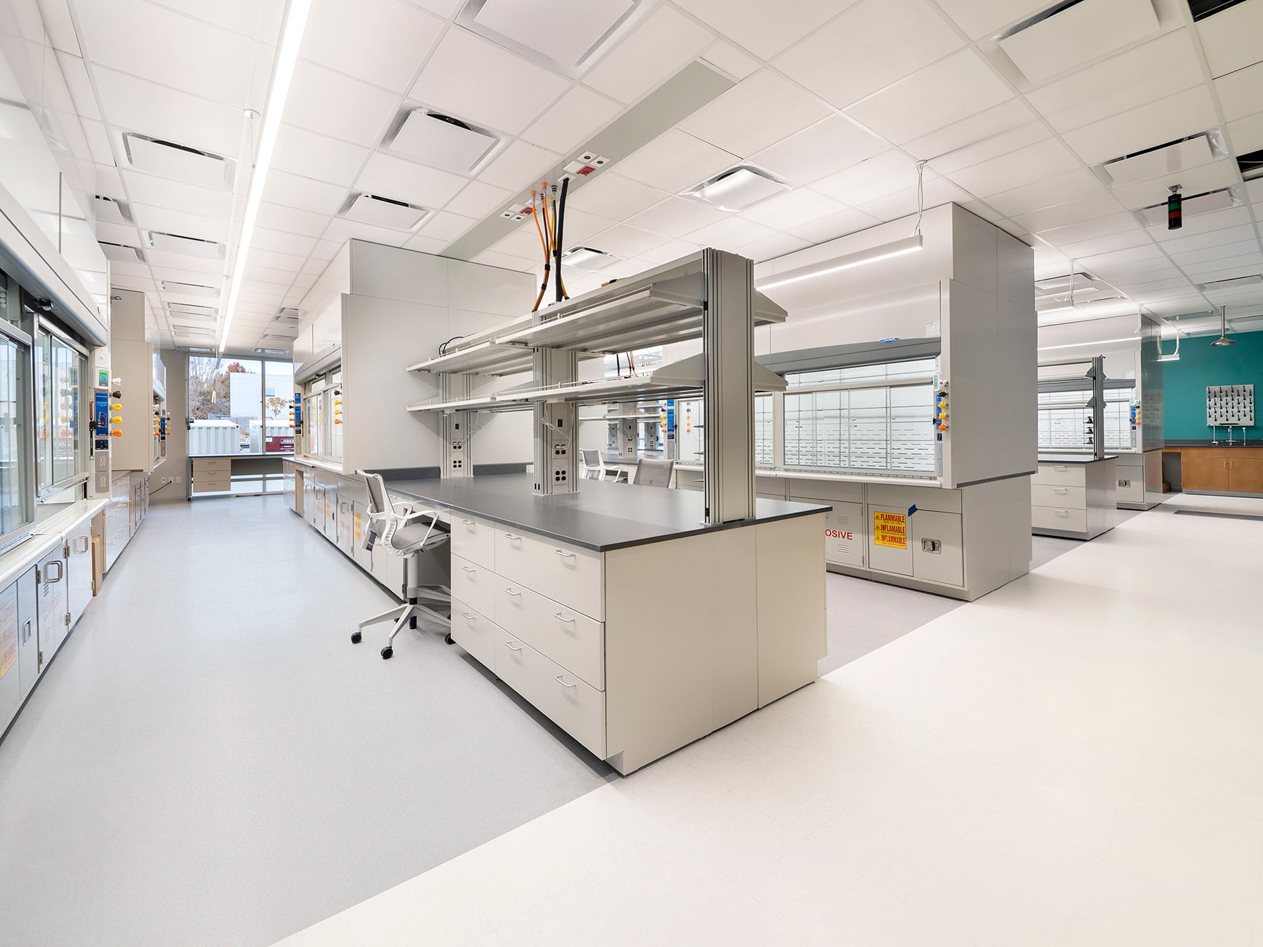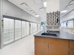ISEC furnished and installed the laboratory and millwork portions of this high-profile project. The laboratory scope included steel, wood, and laminate casework with epoxy and stainless-steel tops. We also provided lab equipment, such as sterilizers, and multiple fume hoods. This project was a technologically advanced and elaborate display of ISEC’s involvement in the Science & Technology market.