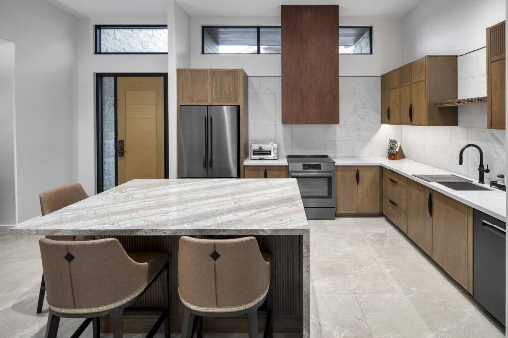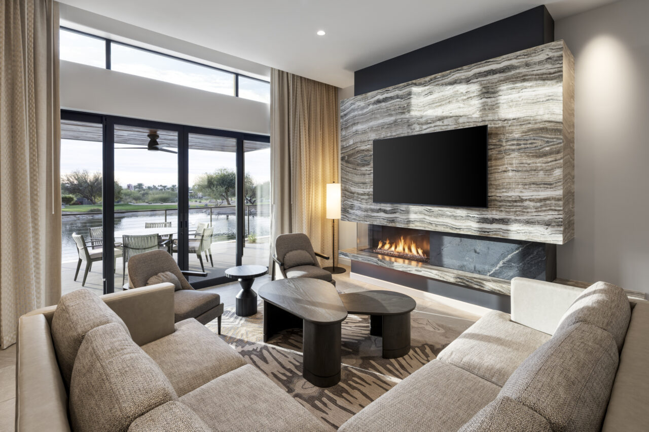 ISEC elevated the luxury environment at The Villas at Canyon Suites at the Phoenician through a broad scope of work that included door systems, millwork, exterior IPE soffits, stone countertops, and custom fireplaces.
