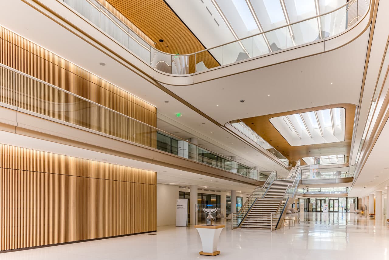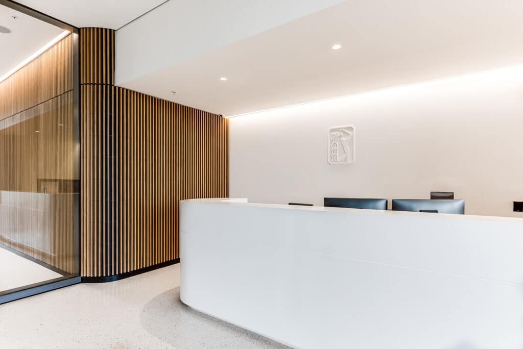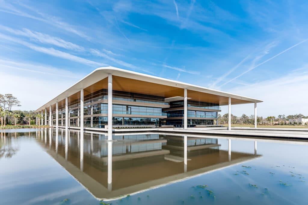 The PGA Tour now has a new headquarters. This project is comprised of two, three-story buildings being connected by an atrium, and a man-made lake for the building to sit upon. ISEC provided the casework and surrounds, as well as the extensive wall and ceiling paneling seen throughout the building.