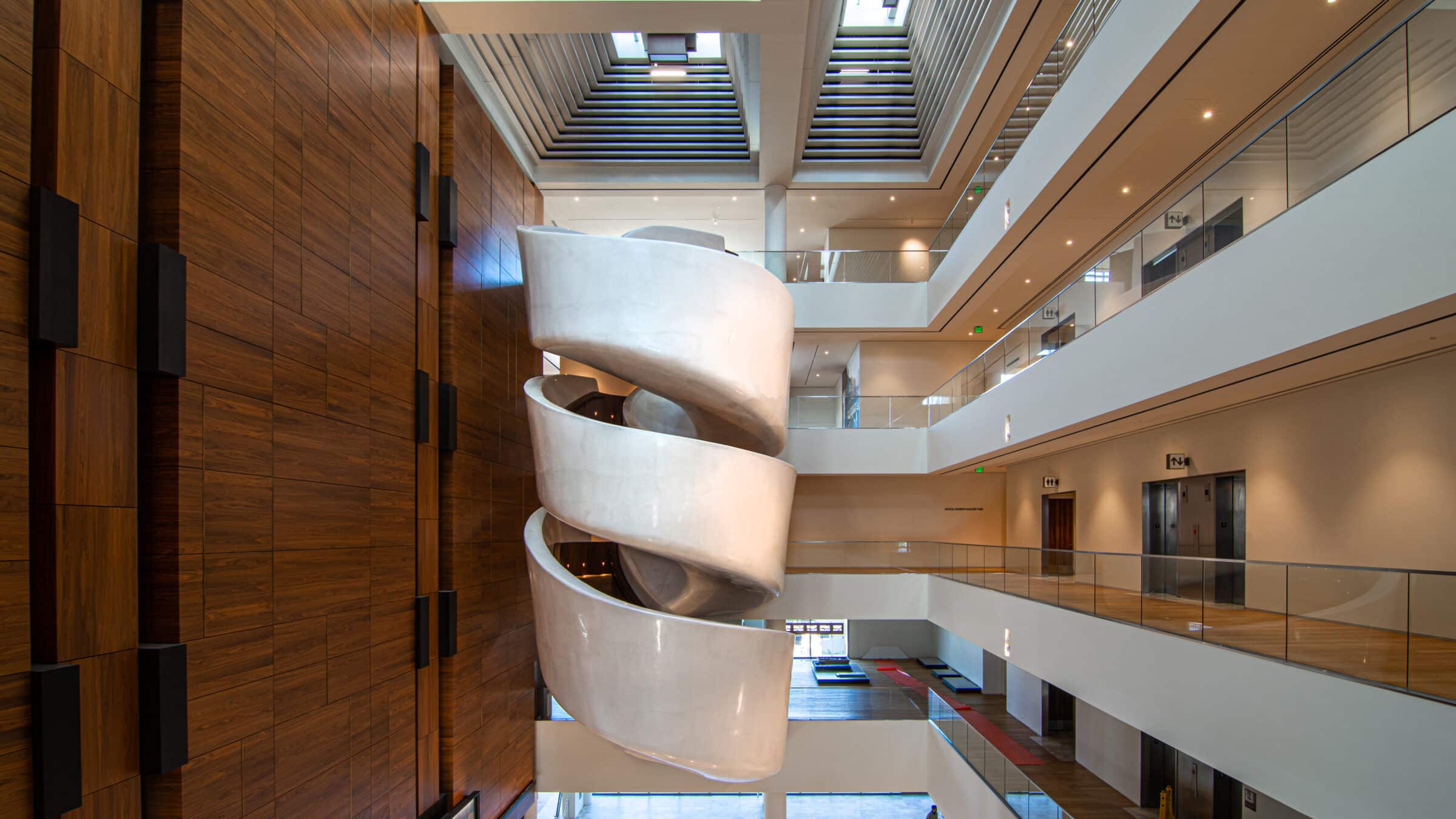 The Museum of the American Arts & Crafts Movement (MAACM) is an absolute must see in the heart of St. Petersburg, Florida. This 137,000-square-foot museum includes a skillfully crafted 5-story feature wall, one of a kind radius stairwell, and a jaw-dropping curved ceiling in the main theatre. Funding was provided by philanthropist, businessman, and avid art collector himself, Rodolfo (Rudy) Ciccarello, with one goal in mind; build a space that draws your attention even from the sidewalk. Beautifully crafted exterior wood ceiling paneling flows from outside to inside with a magnificent indoor-outdoor feel. This is the one and only museum in the world dedicated to the American Arts & Crafts movement.