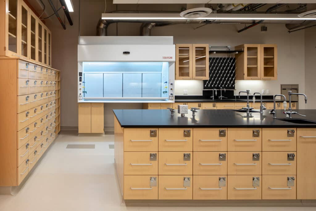 This building was one of UC Riverside’s oldest buildings, it underwent a nearly two-year renovation that was completed in the summer of 2019. The renovated building features modernized classrooms and research laboratories. The improvements to the 114,000-square-foot facility, first built in 1966, were split into two phases. The first and second floors of the north wing saw extensive renovations with the interior concrete walls of former research labs demolished and new instructional labs built. On the third floor, existing labs were remodeled to support low- to medium-intensity research.