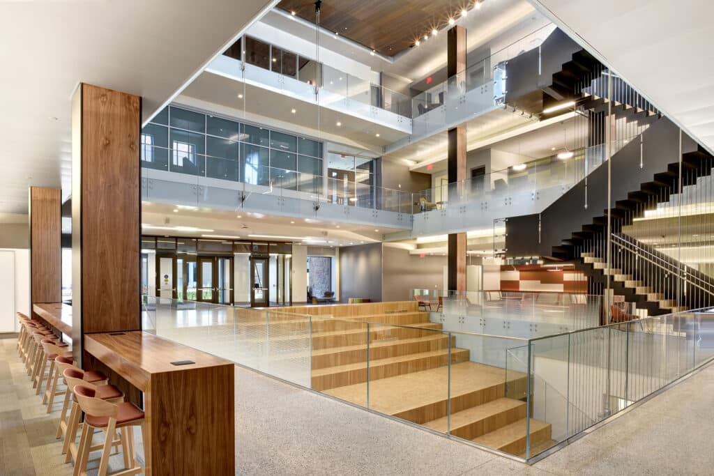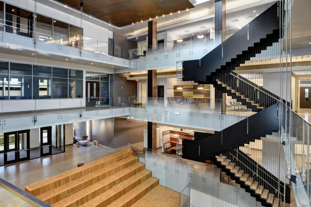The Engineering and Applied Sciences building on the University of Wyoming campus will serve the school by providing 109,000 square feet of labs, faculty offices, classrooms, and collaborative spaces. This new addition to the UW campus was the most ambitious construction project in the history of the institution. This Tier-1 college is a nationally recognized science and research institution, where ISEC furnished and installed all glass handrails and guardrails.