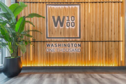 Washington 1000 is a stunning 17-story office building in Seattle, Washington that ISEC helped bring to life. ISEC provided custom woodworking along with countertops and casework. Part of our scope included a two-story wood feature wall made of oak panels, with heavy duty, thick, blackened steel trim. We also installed a twelve-foot-long blackened steel security desk, custom designed screen wall with wood slat fins, and a wood block chandelier mounted two stories above the escalators. All this work showcases our expert craftwork while enhancing the common areas of the building.