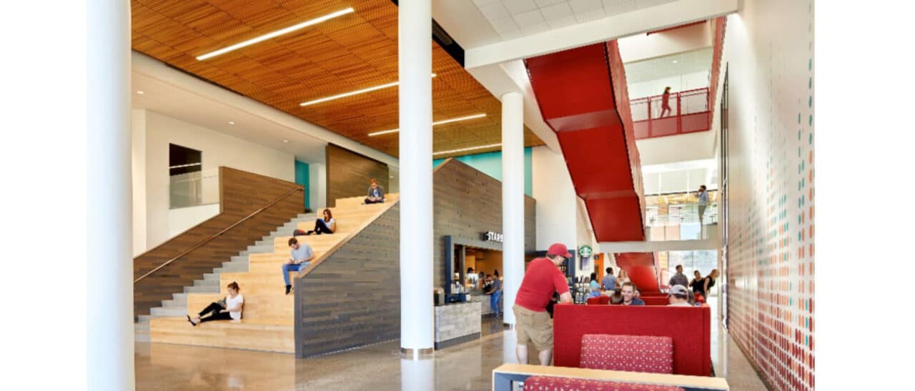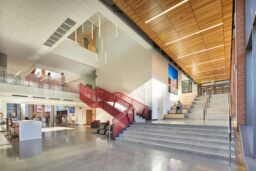This building is an 83,000-square-foot, high-performance academic facility on Washington State University’s Pullman Campus. The four-story structure, The Spark, provides robust systems and flexible infrastructure to accommodate rapidly evolving technology. The Spark’s façade is comprised of brick, masonry, and a curtain wall. The facility features a 250-seat learning hall with curved LED televisions surrounding the space.