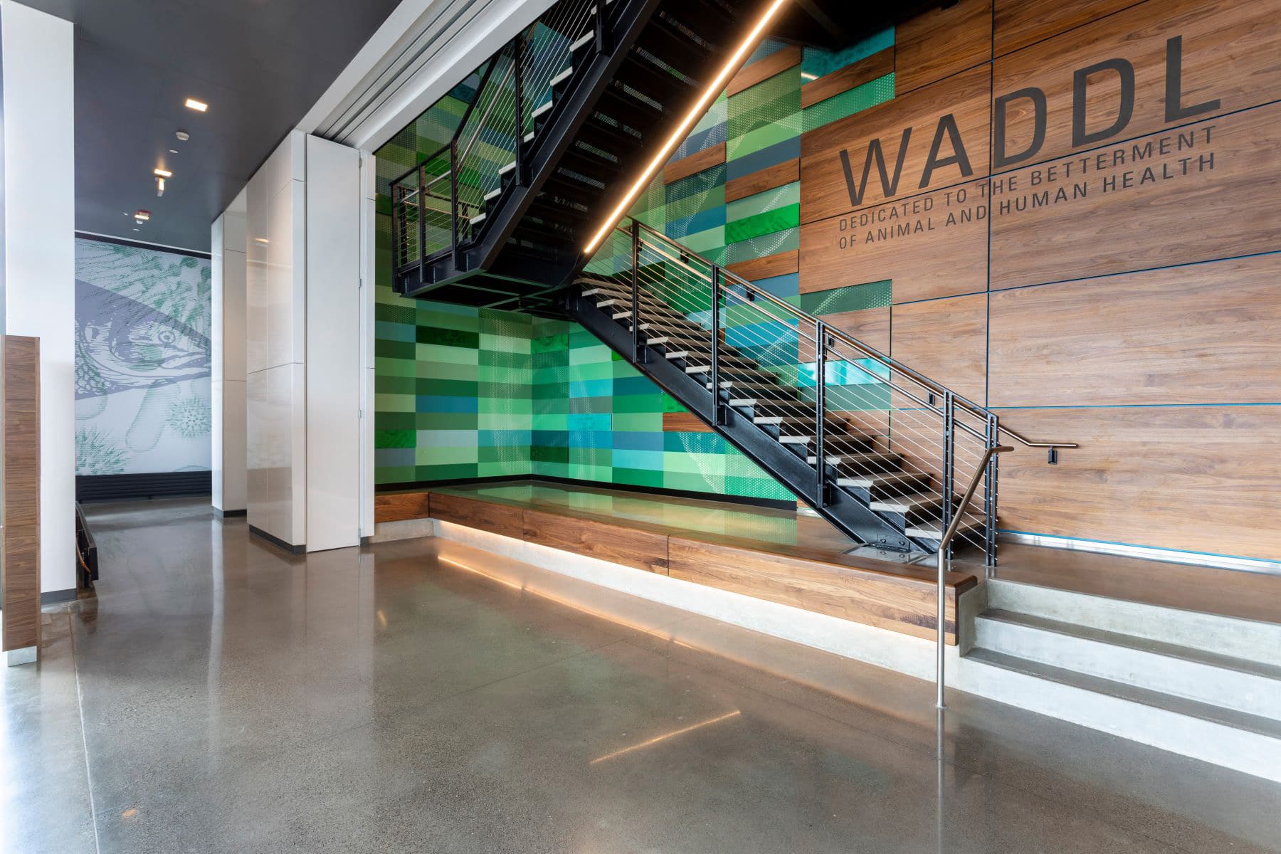 The $47M Washington Animal Disease Diagnostic Laboratory (WADDL) is on the front lines of our nation’s defense against both emerging and foreign disease, and food-borne illness. The facility includes laboratories, a necropsy suite, classrooms, offices, and collaboration space. Our design-build team worked with WSU Facility Services and WADDL to deliver this highly complex building below budget and on time – despite a global pandemic during construction.